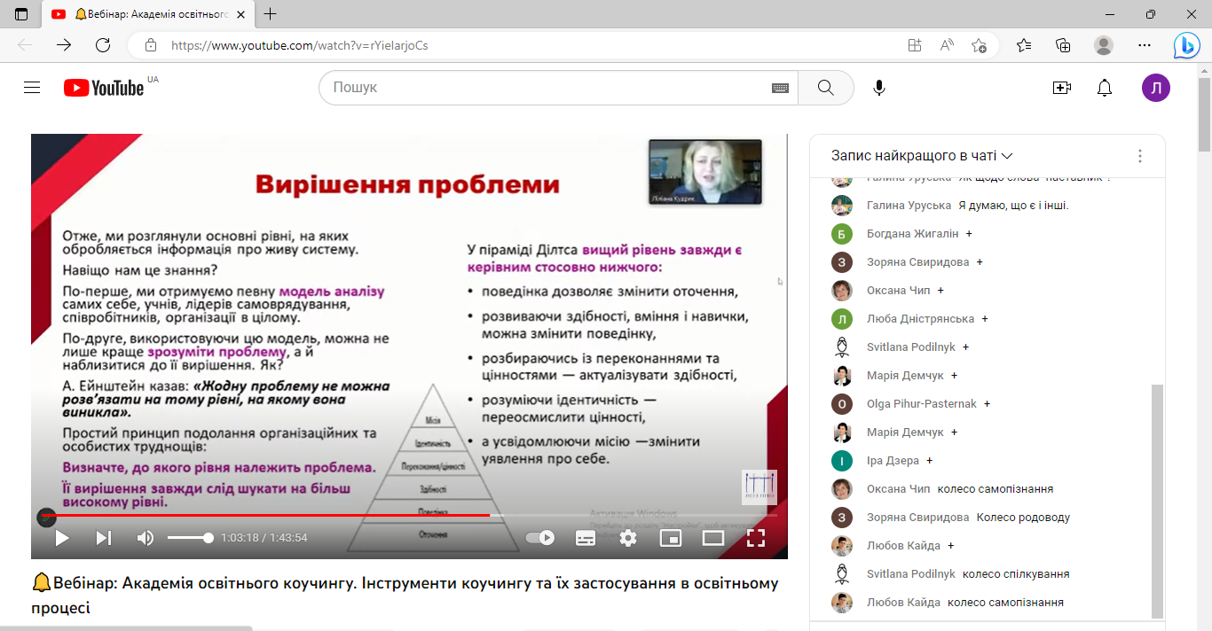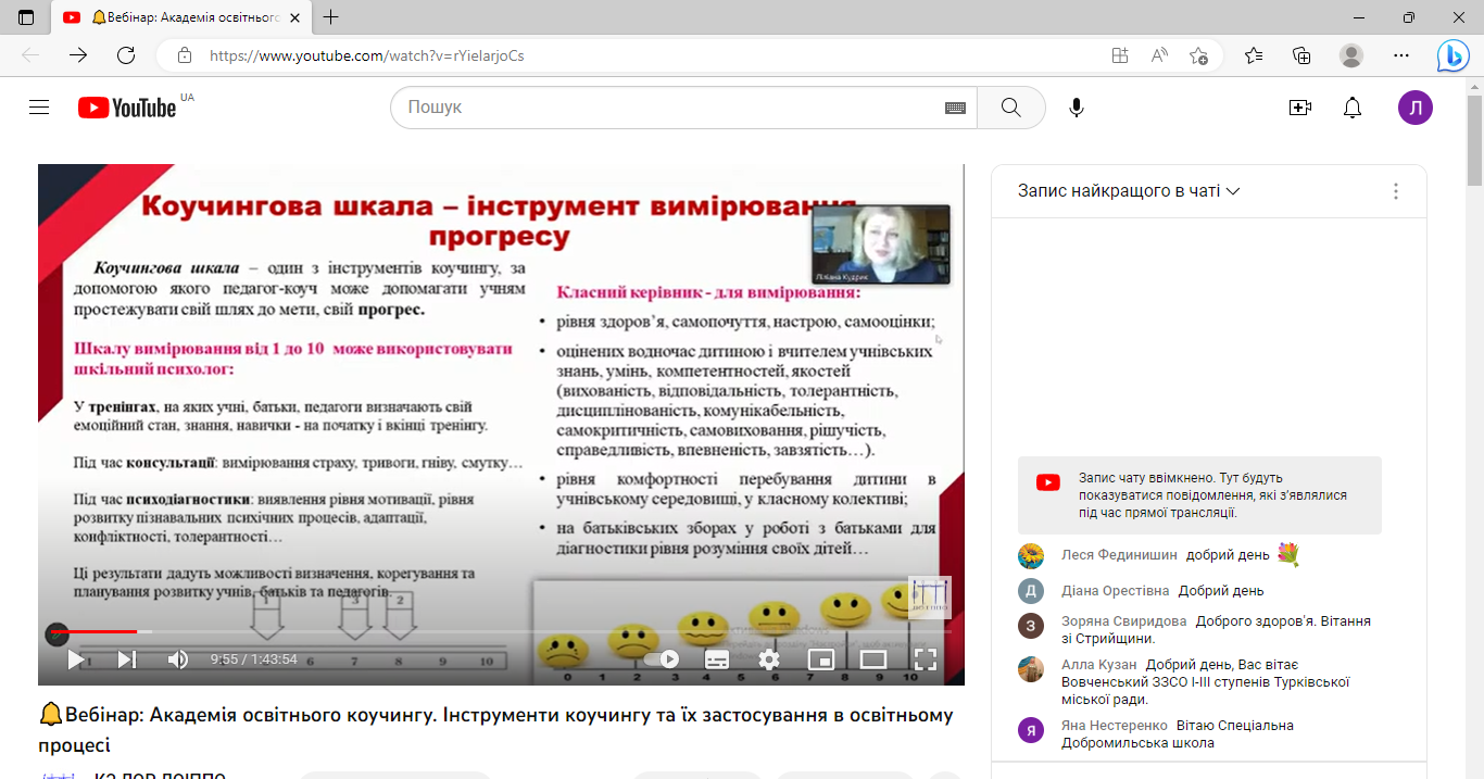 На вебінарі розглянули варіанти застосування коучингової шкали в діяльності класного керівника, психолога, педагога-організатора, учителя-предметника, учителя початкової школи, використання шкалювання для вимірювання прогресу у різних аспектах життя і діяльності.