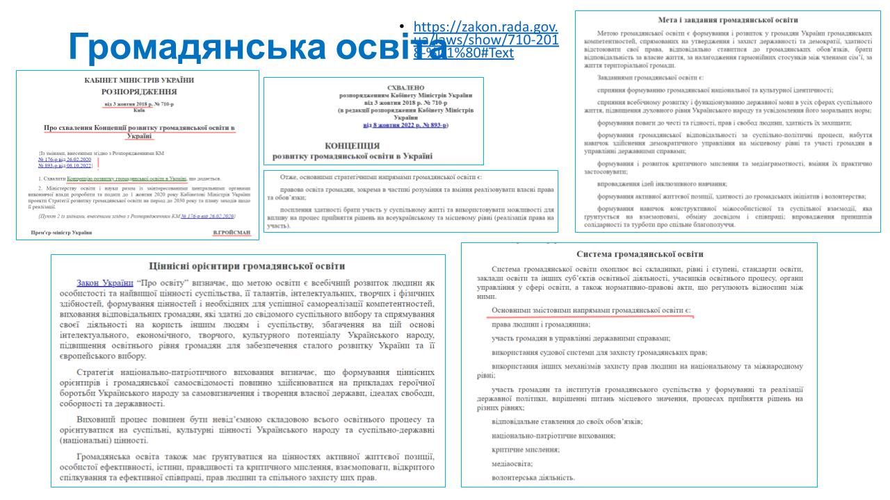 окремих та інтегрованих курсів історії і громадянської освіти.