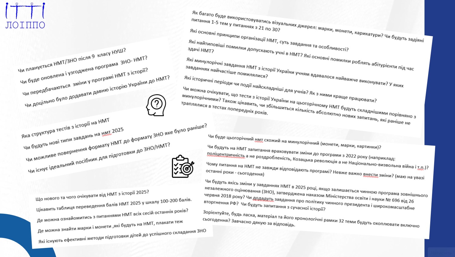 Довгоочікувана розмова, присвячена підготовці до Національного мультипредметного тесту з історії у 2025 році, відбулася 18 лютого 2025 року на YouTube-каналі Львівського обласного інституту післядипломної педагогічної освіти у рамках співпраці КЗ ЛОР ЛОІППО та ЛЦОЯО.