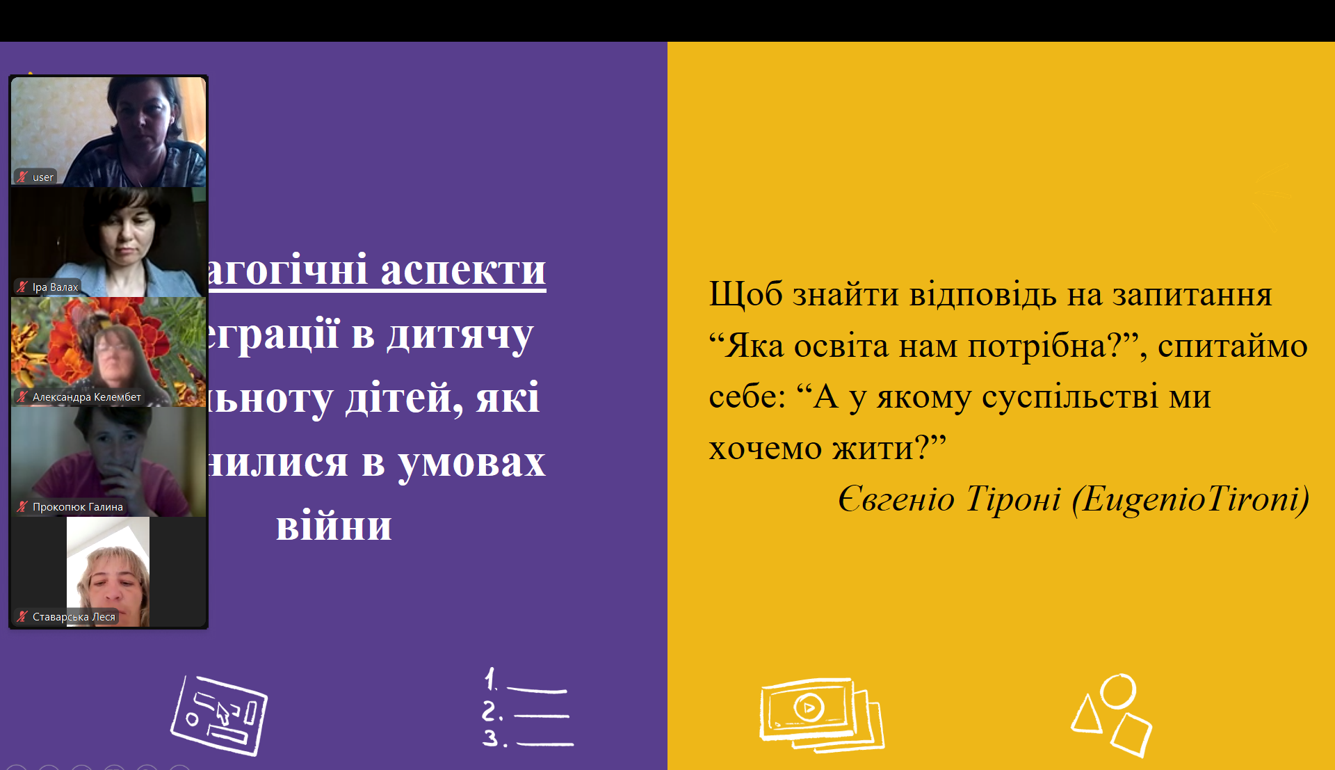 Мета тренінгу: забезпечення педагогів відповідним інструментарієм для формування демократичного громадянства та освіти з прав людини задля сприяння інтеграції дітей, які опинилися в умовах війни.
