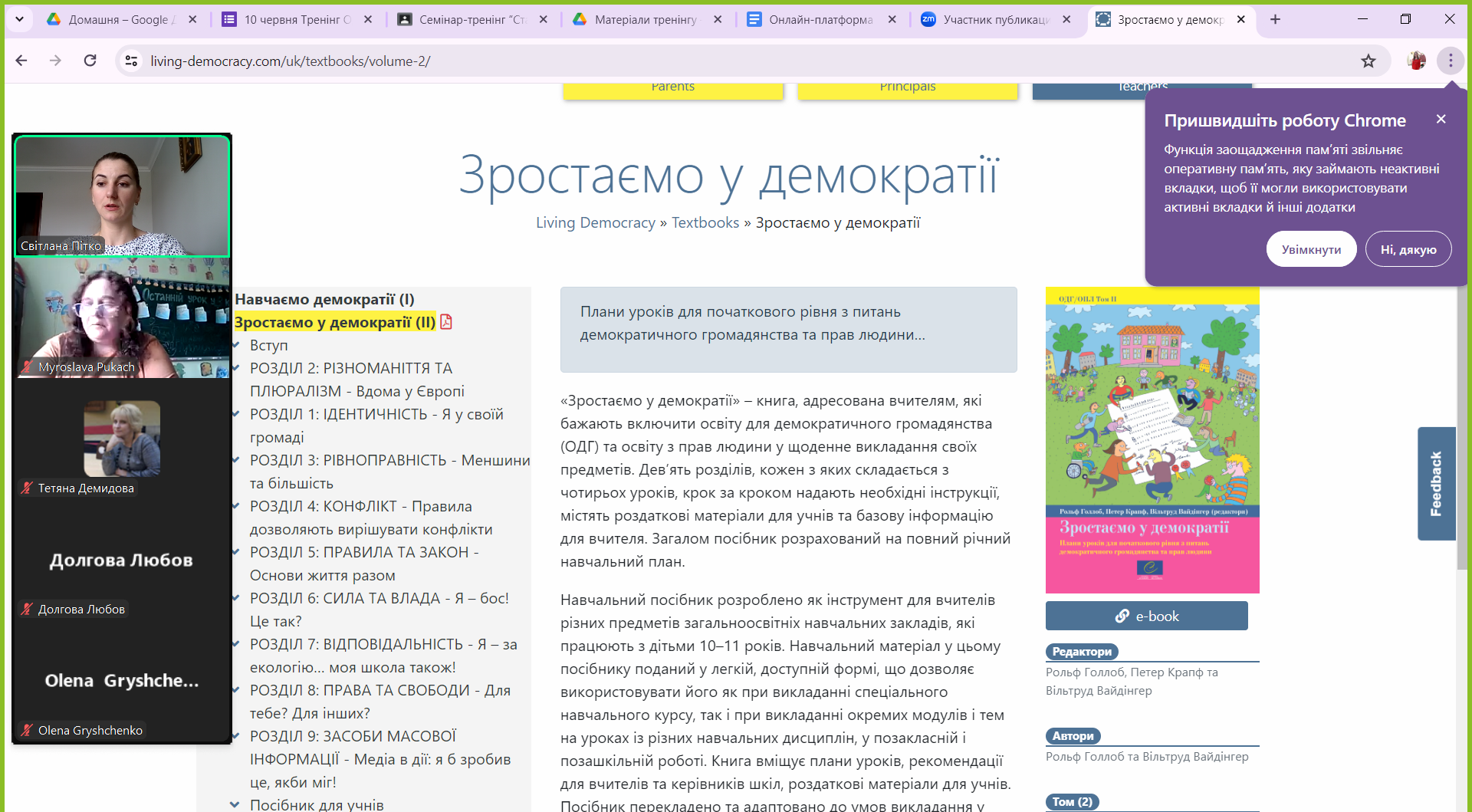 Світлана Тупись, методистка кабінету координаційно-методичної діяльності КЗ ЛОР «Львівський обласний інститут післядипломної педагогічної освіти», ознайомила з ресурсами ОДГ/ОПЛ, які можна використовувати у роботі з дитячихми спільнотами для розвитку демократичної взаємодії та освіти з прав людини.