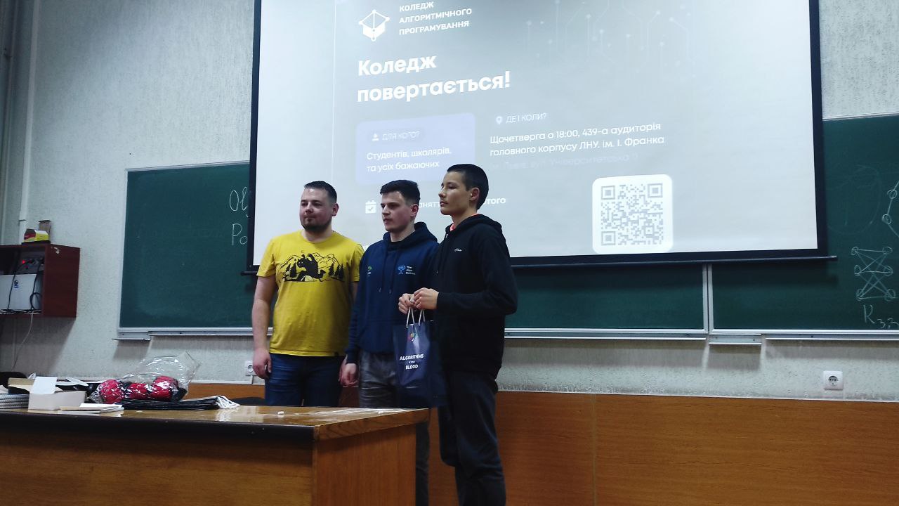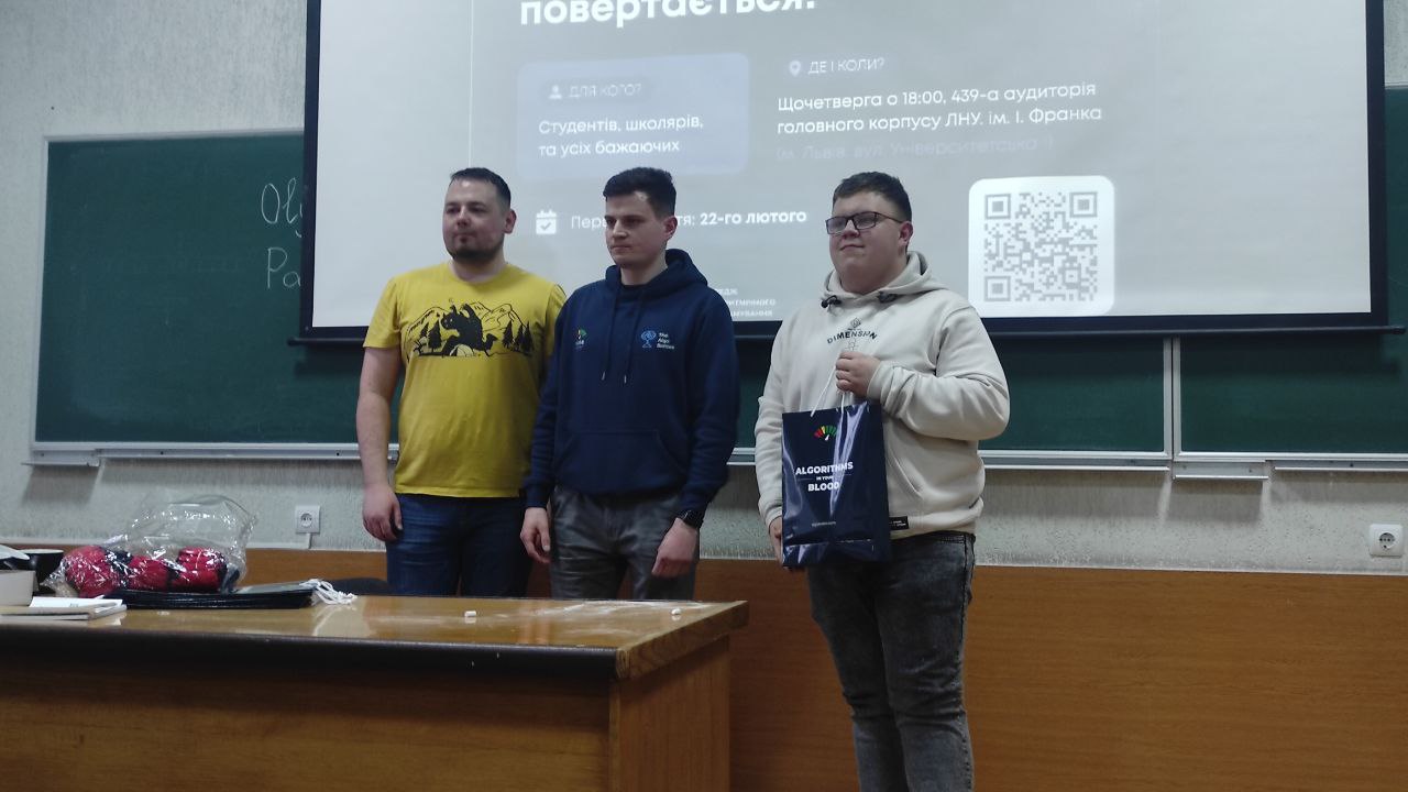 Під час нагородження найкращих учасників виокремилися імена тих, хто продемонстрував найвищий рівень майстерності. Сподіваємося, це стало вагомим кроком для їхнього подальшого розвитку та стимулом до самореалізації в галузі інформатики. Подарунки призерам підготували представники команди «Алготестер» Віталій Герасимів, Віталій Мельник та Андрій Макар.
