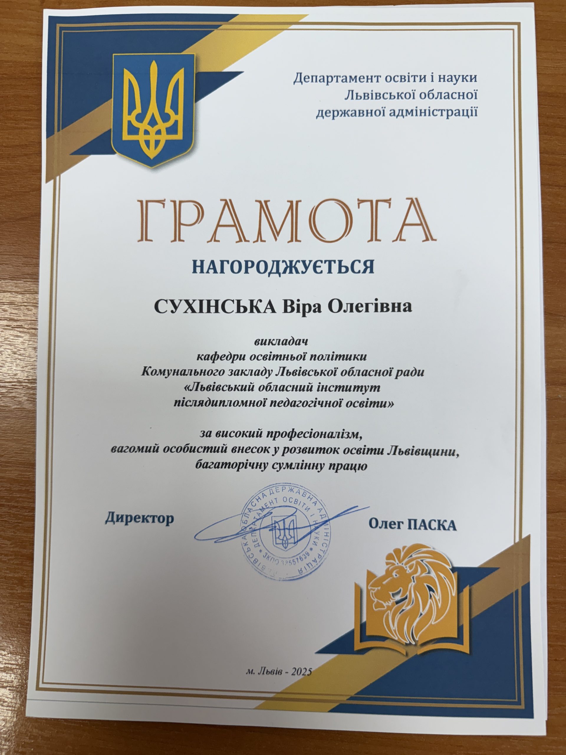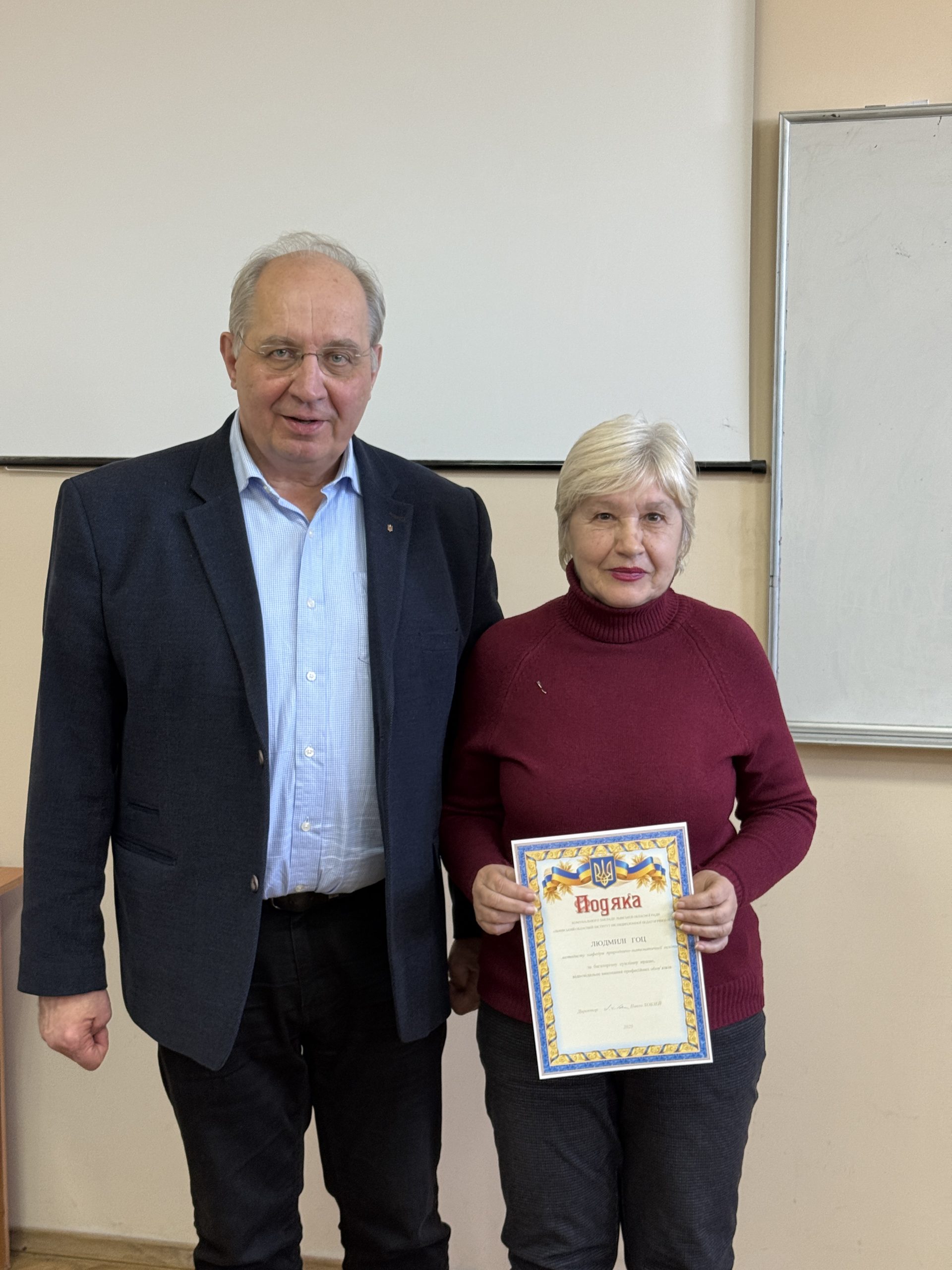 Подякою Львівського обласного інституту післядипломної педагогічної освіти нагороджено Людмилу Гоц, методистку кафедри природничо-математичної освіти.