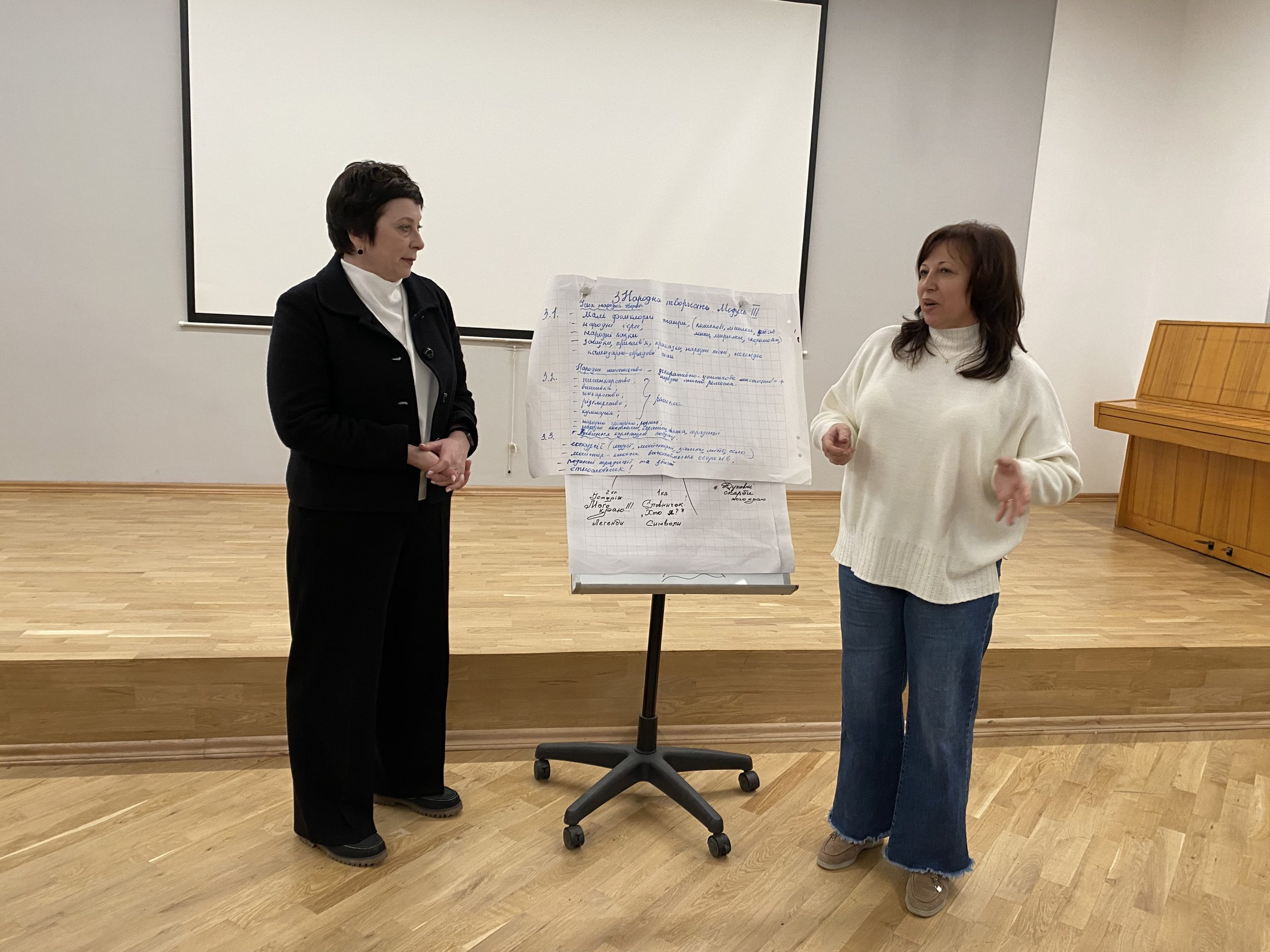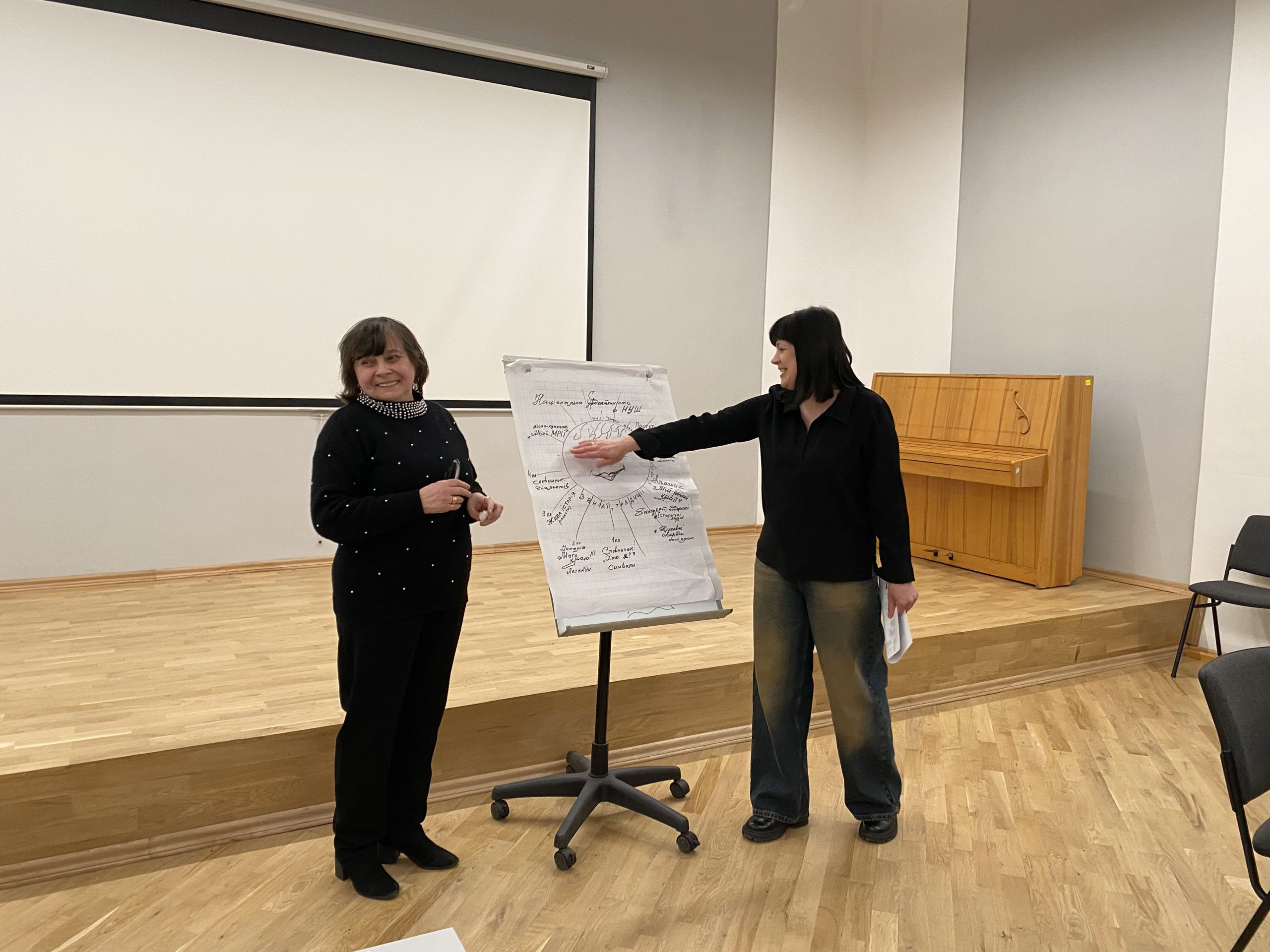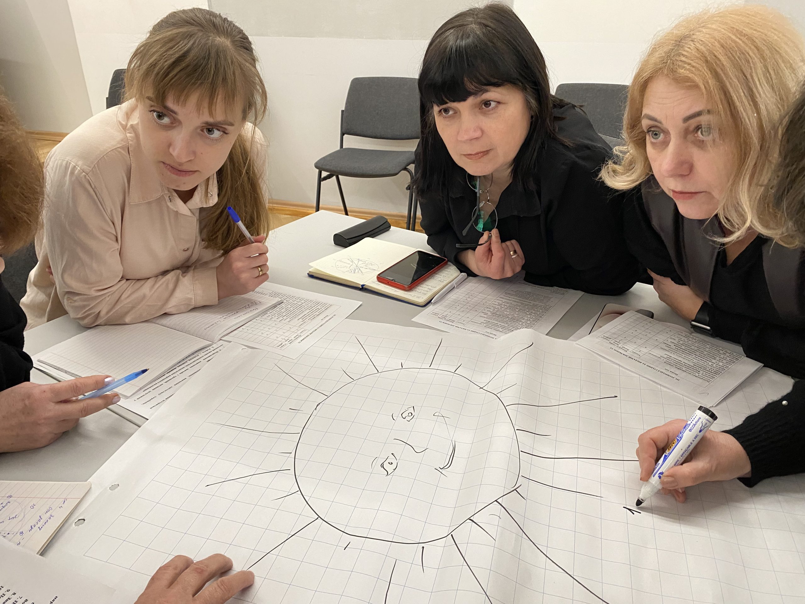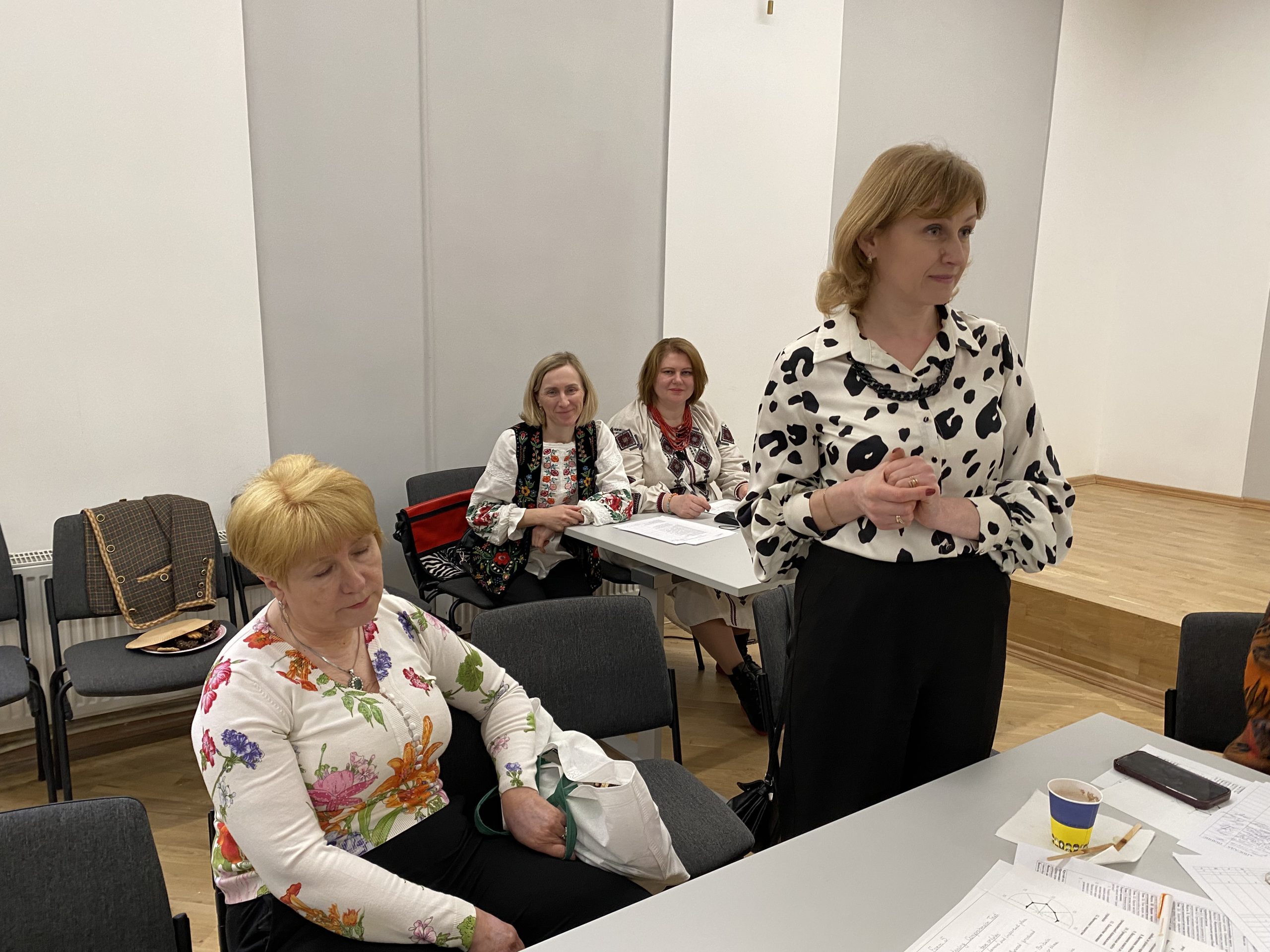 За допомогою коучингової техніки «Колесо балансу» учасники здійснили самодіагностику рівня національної свідомості і патріотизму, проаналізували успіхи і недопрацювання у формуванні національної ідентичності учнів молодшої школи. Було озвучено чимало нових рішень, ідей, як заповнити ці прогалини. Під час роботи в групах педагоги обговорили конкретні теми, проєкти, методи і форми роботи, які вони хотіли б реалізувати, працюючи у творчій майстерні.