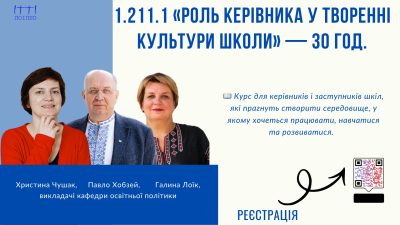 Натхненно керуй. Розвивай команду. Створюй культуру школи разом із кафедрою освітньої політики ЛОІППО!