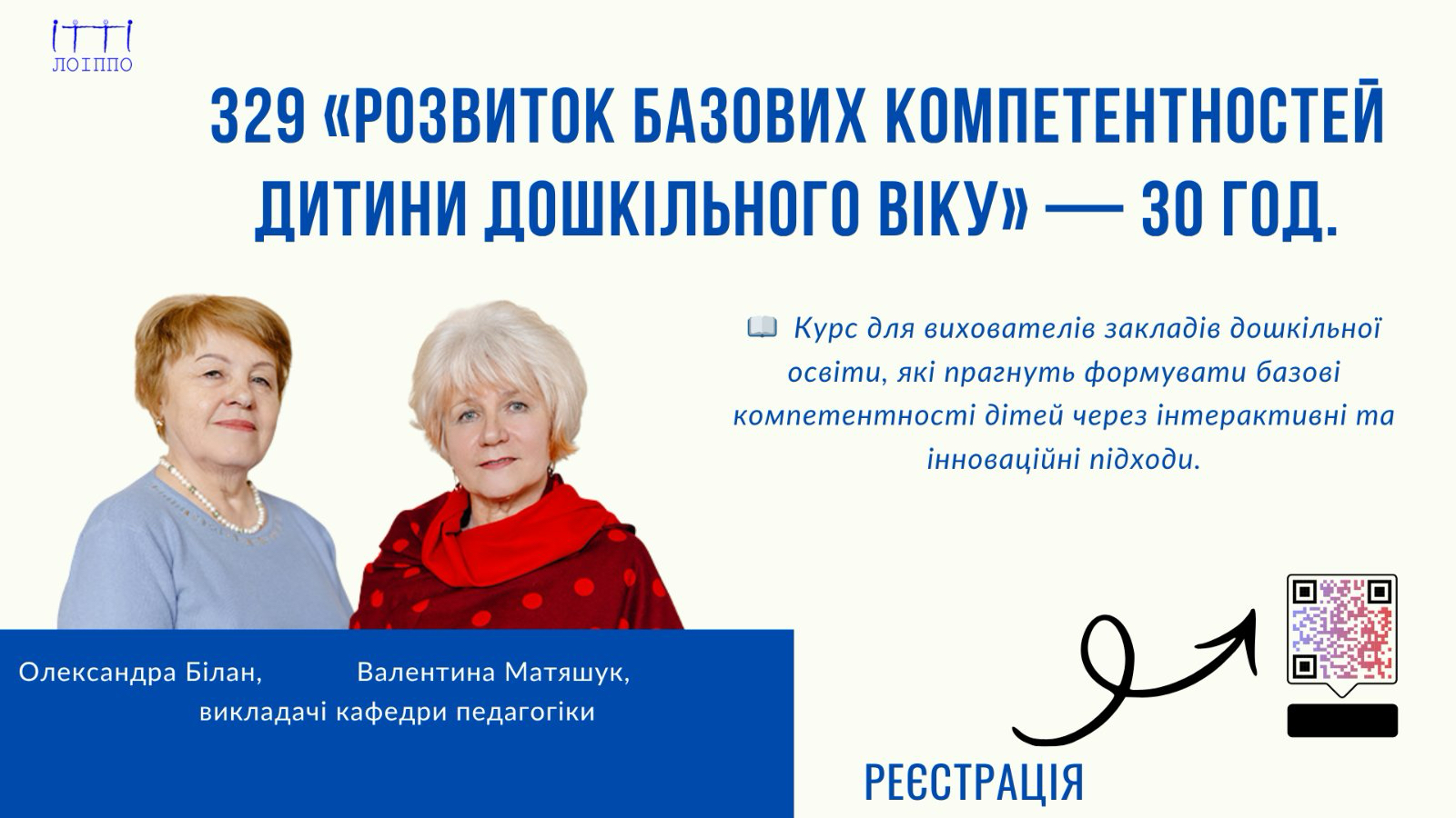 329 «Розвиток базових компетентностей дитини дошкільного віку» — 30 год.