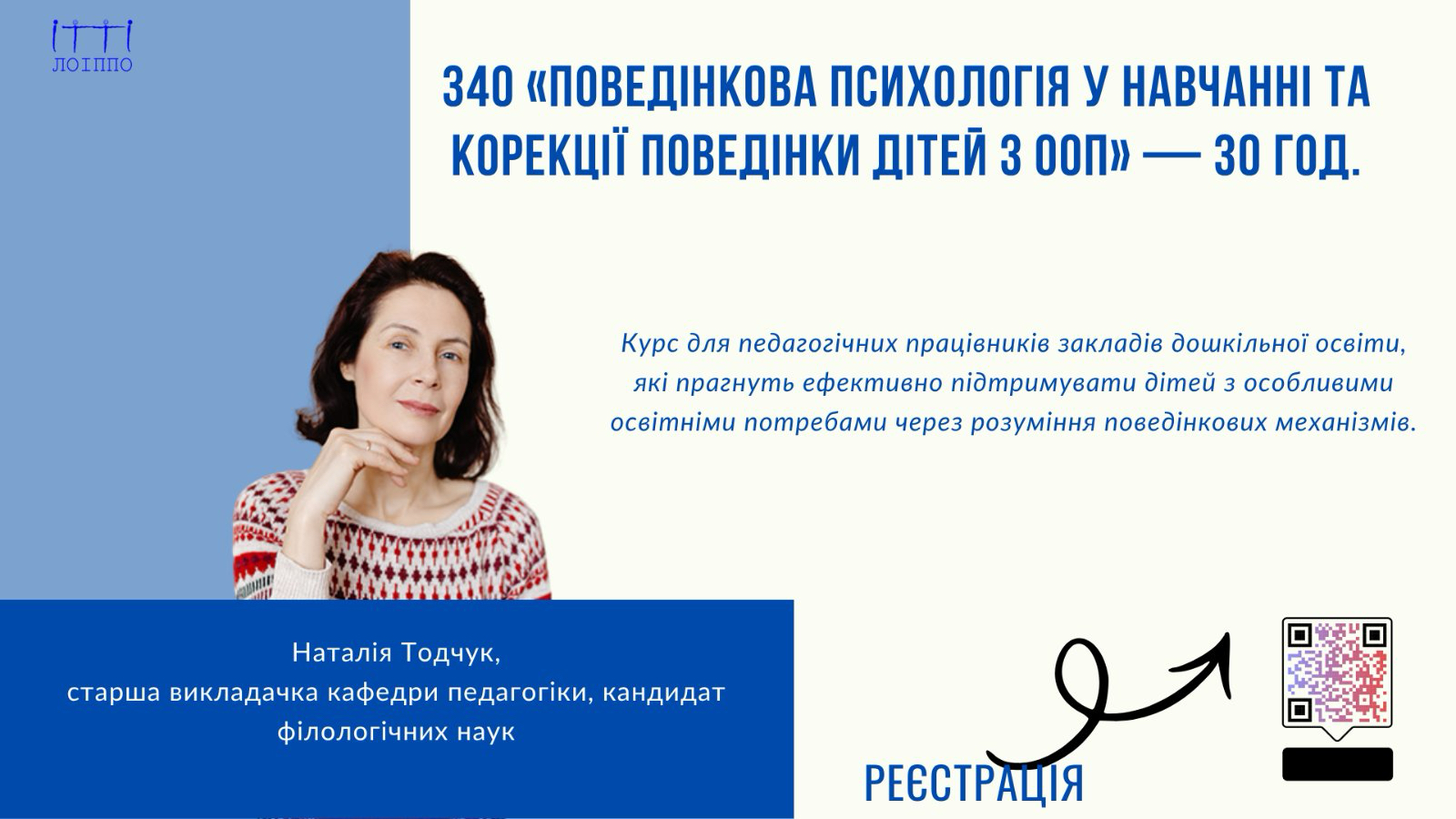 340 «Поведінкова психологія у навчанні та корекції поведінки дітей з ООП» — 30 год.