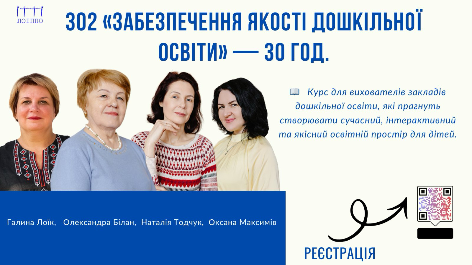 302 «Забезпечення якості дошкільної освіти» — 30 год.