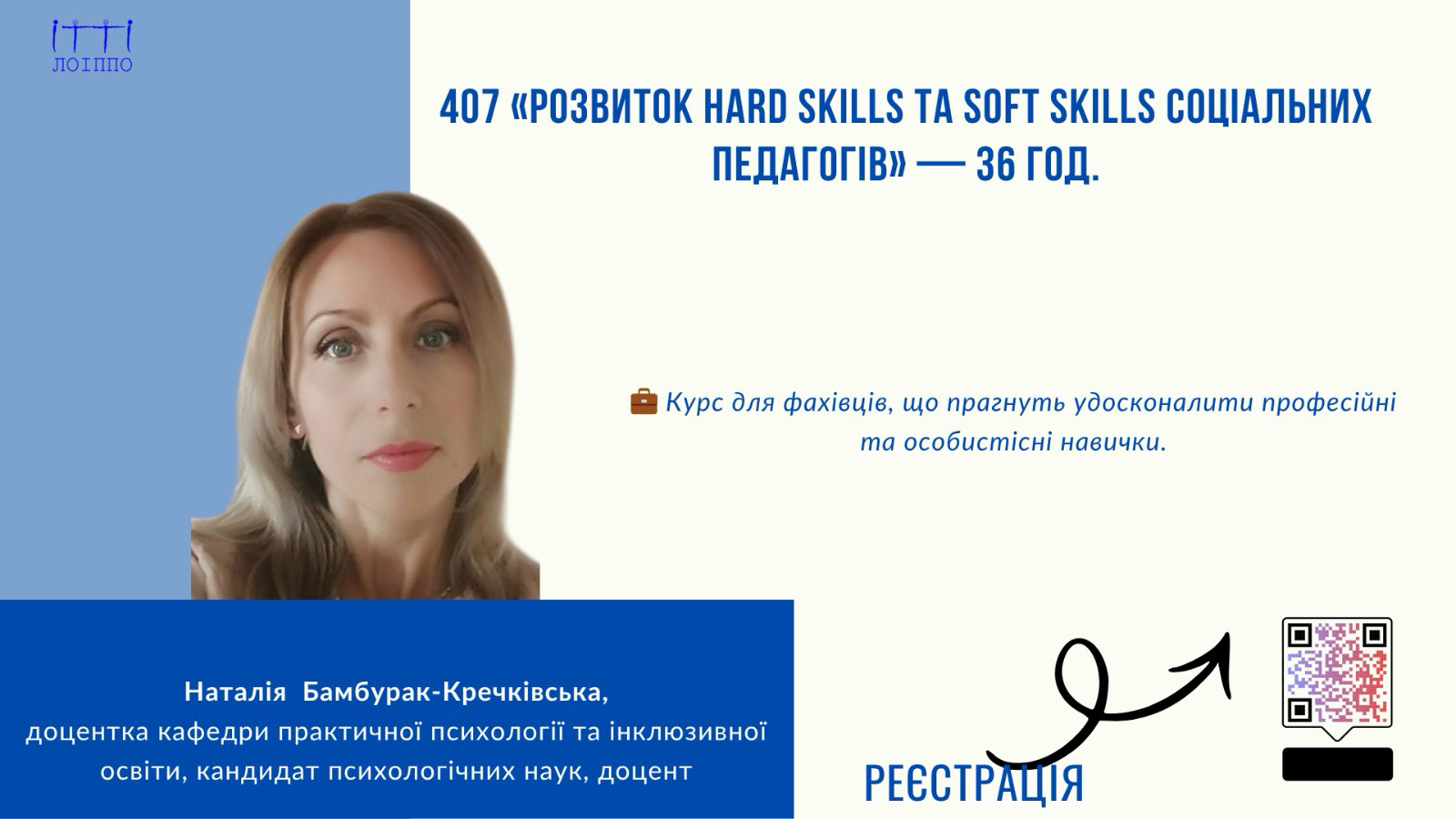 407 «Розвиток Hard Skills та Soft Skills соціальних педагогів» — 36 год.