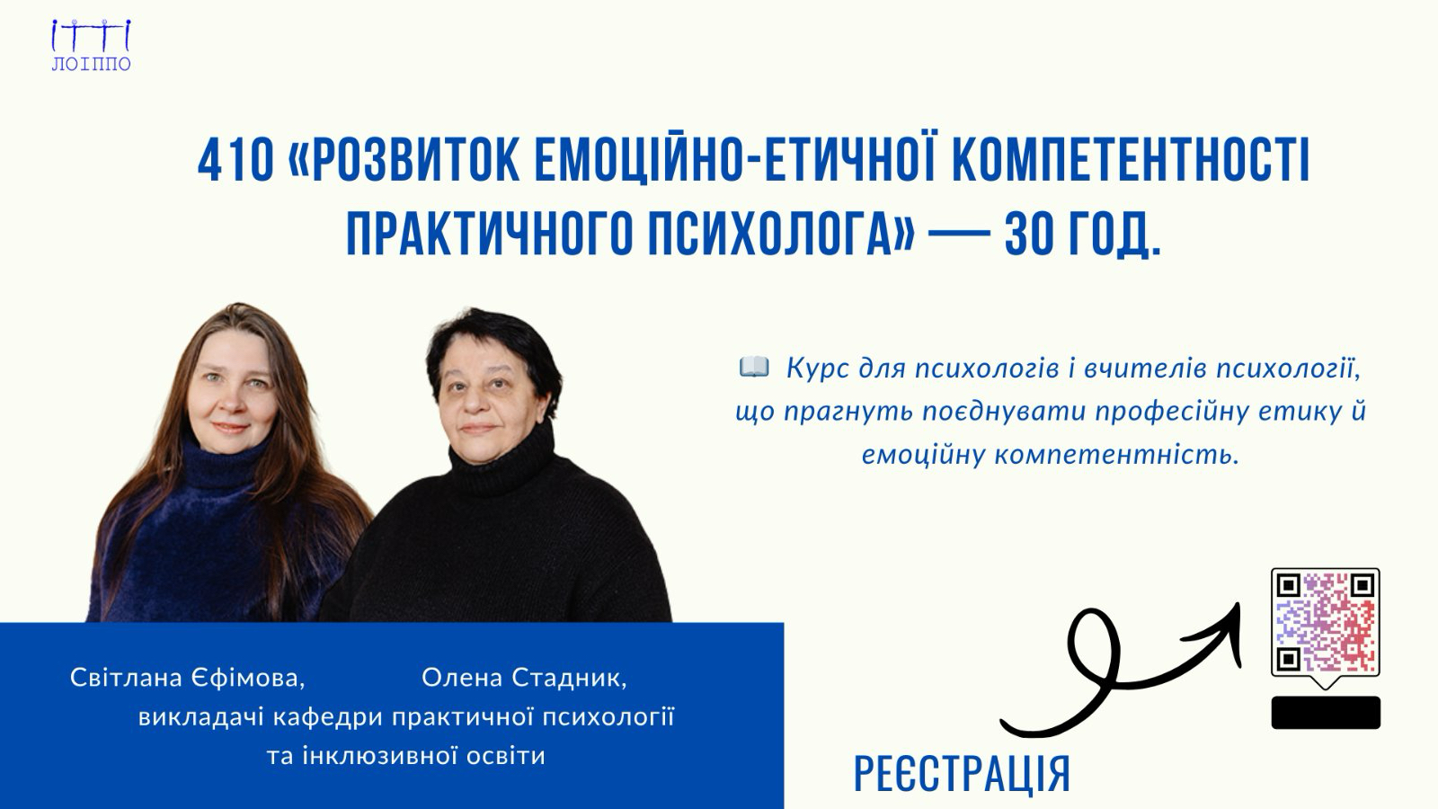 410 «Розвиток емоційно-етичної компетентності практичного психолога» — 30 год.