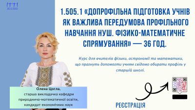 1.505.1 «Допрофільна підготовка учнів як важлива передумова профільного навчання НУШ. Фізико-математичне спрямування» — 36 год.