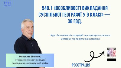 548.1 «Особливості викладання суспільної географії у 9 класі» — 30 год.