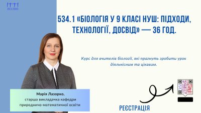 534.1 «Біологія у 9 класі НУШ: підходи, технології, досвід» — 36 год.