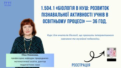 1.504.1 «Біологія в НУШ: розвиток пізнавальної активності учнів в освітньому процесі» — 36 год.