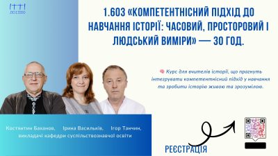 1.603 «Компетентнісний підхід до навчання історії: часовий, просторовий і людський виміри» — 30 год.