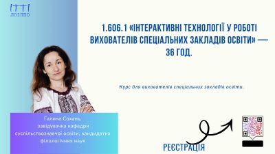 1.606.1 «Інтерактивні технології у роботі вихователів спеціальних закладів освіти» — 36 год.