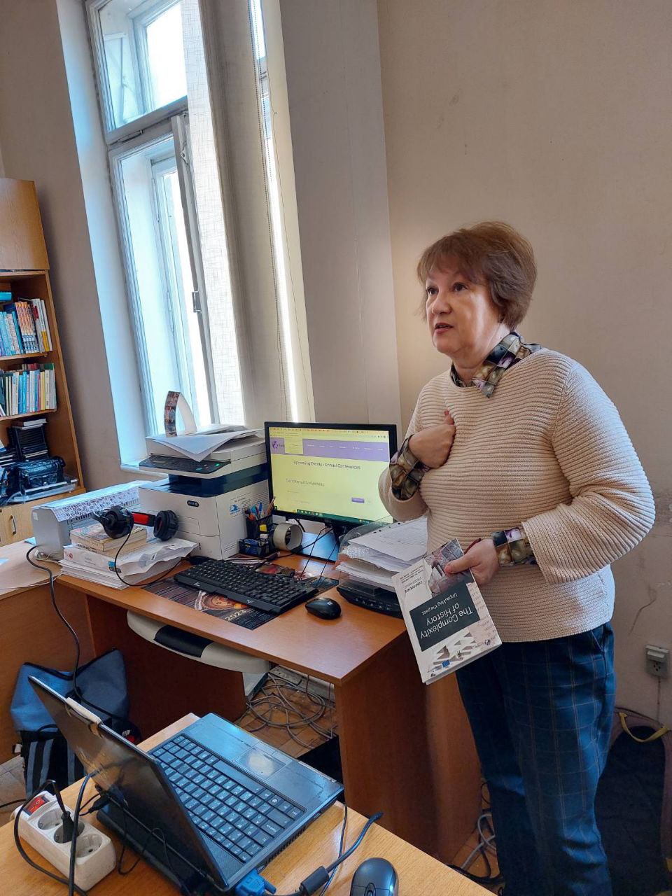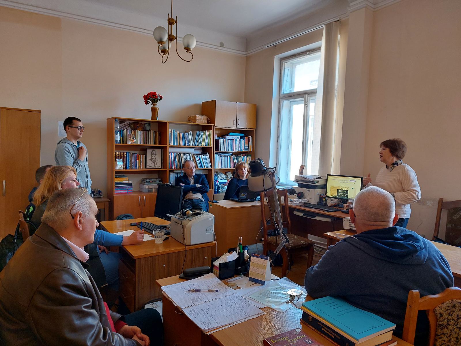Ірина Костюк ознайомила з тематикою цих семінарів працівників кафедри суспільствознавчої освіти, показала можливості сайту EuroClio, зокрема, які освітні матеріали https://euroclio.eu/resource_categories/educational-material/ можна знайти, включно з посібниками українською мовою, як використовувати колекції візуальних та текстових джерел EuroClio https://euroclio.eu/ та Historiana https://historiana.eu/#/