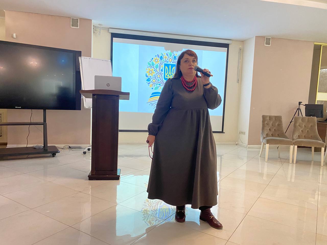 Наталія Пастушенко, заступниця директора з науково-педагогічної роботи, доцентка кафедри гуманітарної освіти КЗ ЛОР «Львівський обласний інститут післядипломної педагогічної освіти», кандидат педагогічних наук, на початку конференції виступила із доповіддю про те, які ж умови створює сучасна українська школа для того, щоб діти навчалися любити Україну, як педагоги організовують освітнє середовище і який зміст освіти щодо формування ідентичності.