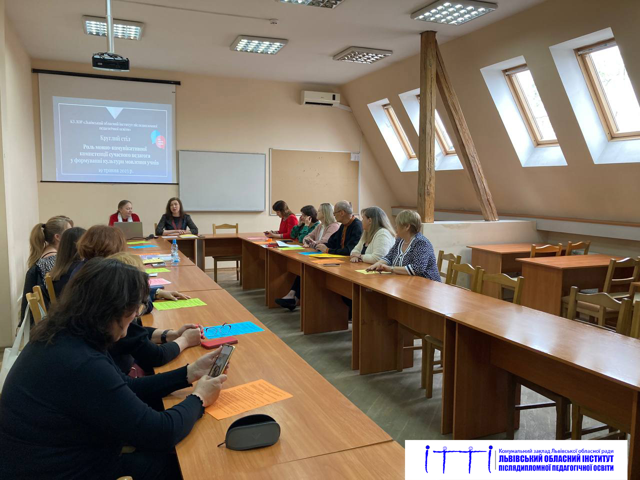 19 травня 2023 року кафедра гуманітарної освіти КЗ ЛОР «Львівський обласний інститут післядипломної педагогічної освіти» провела круглий стіл на тему «Роль мовно-комунікативної компетентності сучасного педагога у формуванні культури мовлення учнів».
