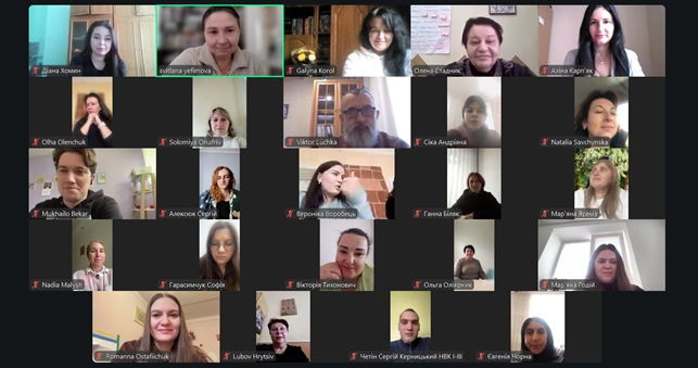 У практичній частині слухачі обговорювали власний досвід пережитої кризи в малих групах, що сприяло актуалізації знань та вмінь надання належної підтримки людині у кризових станах, а також повернути відчуття опори й внутрішньої присутності.