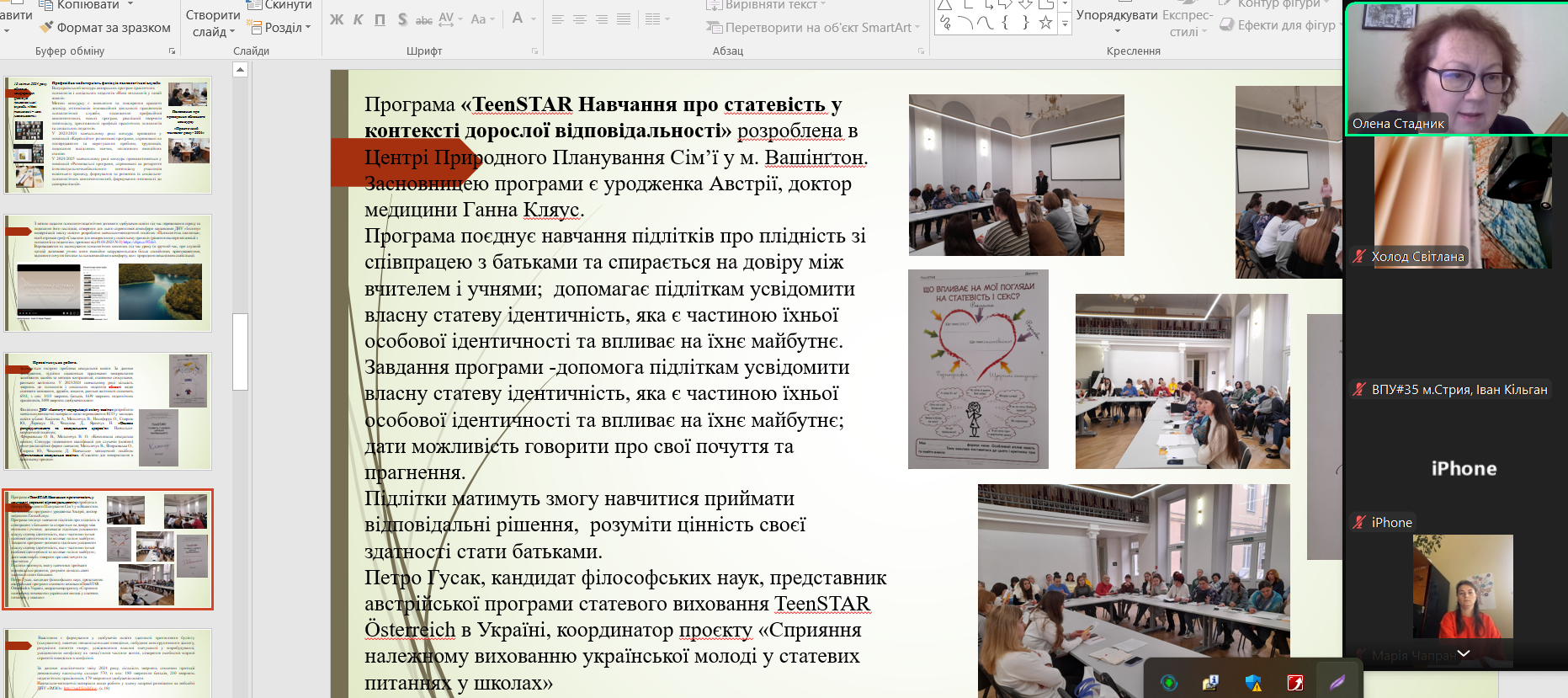 Учасники практикуму обговорили питання про особливості кризового періоду розвитку підлітків та юнацтва, формування адиктивної поведінки, зловживання психоактивними речовинами, інтернет-залежність, суїцидальні нахили, статеве виховання учасників освітнього процесу.