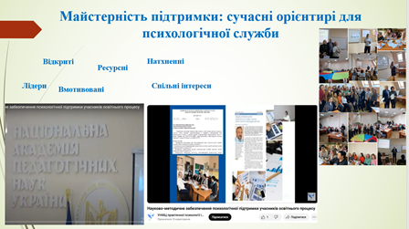 методичний семінар «Майстерність підтримки: сучасні орієнтири для психологічної служби». Участь у заході взяли голови професійних спільнот фахівців психологічної служби закладів освіти територіальних громад Львівщини.
