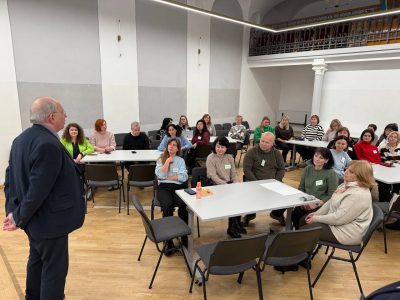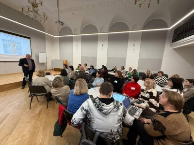 Семінар об’єднав педагогів, зацікавлених у впровадженні сучасних цифрових інструментів у викладання історії. Захід провели Ірина Костюк, старша викладачка кафедри суспільствознавчої освіти ЛОІППО, амбасадорка EuroClio, та Юрай Варга, голова центру освіти та інновацій CEDIN (Словаччина). Послідовний переклад забезпечувала Христина Левицька, методистка кабінету координації впровадження НУШ ЛОІППО.