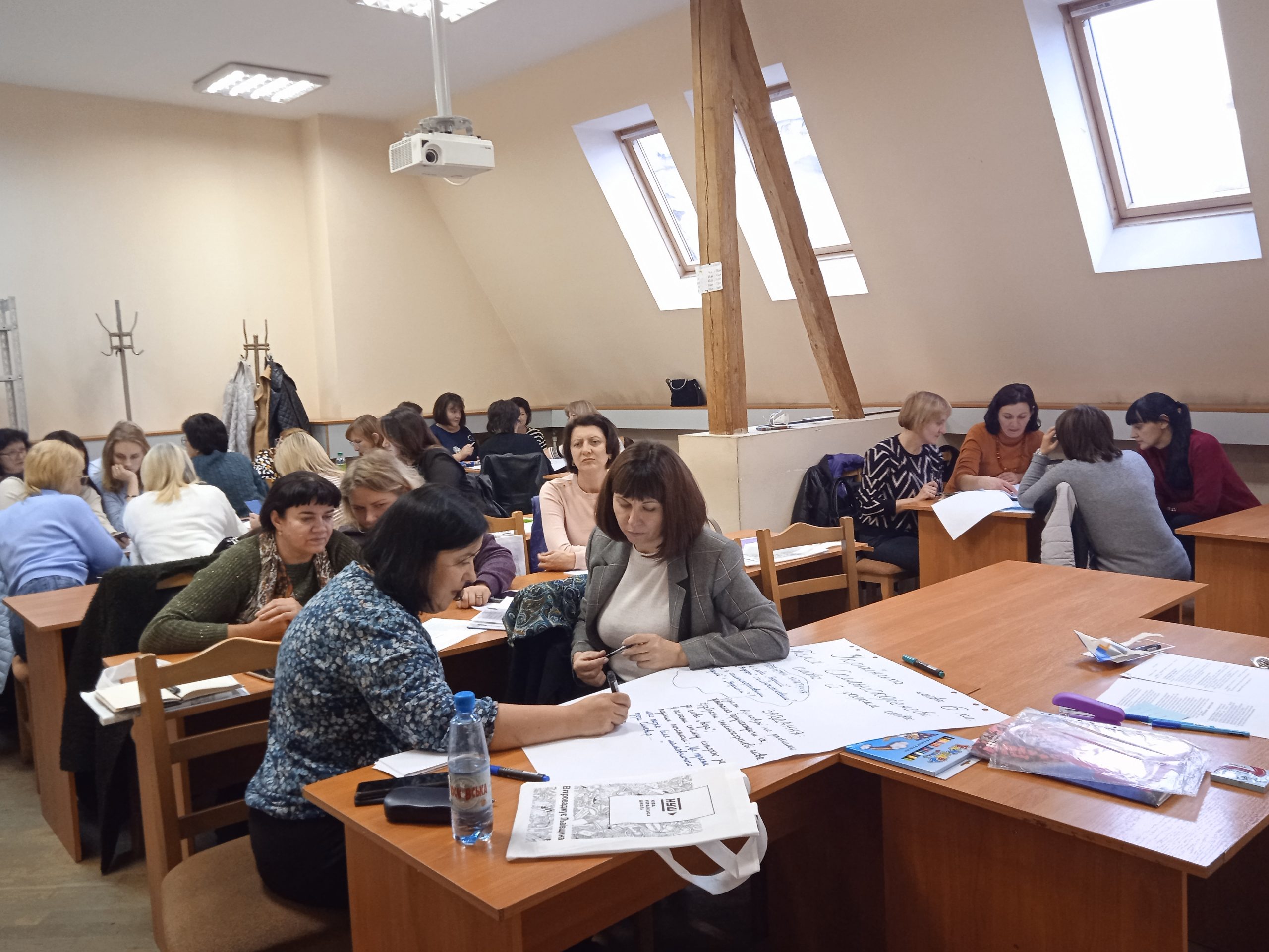 Тема: «Предметно-методична та оцінювально-аналітична компетентність педагога».Навчання провели: завідувачка кафедри гуманітарної освіти, кандидатка філологічних наук Анна-Марія Богосвятська і старша викладачка кафедри гуманітарної освіти, кандидатка філологічних наук Оксана Дільна.
