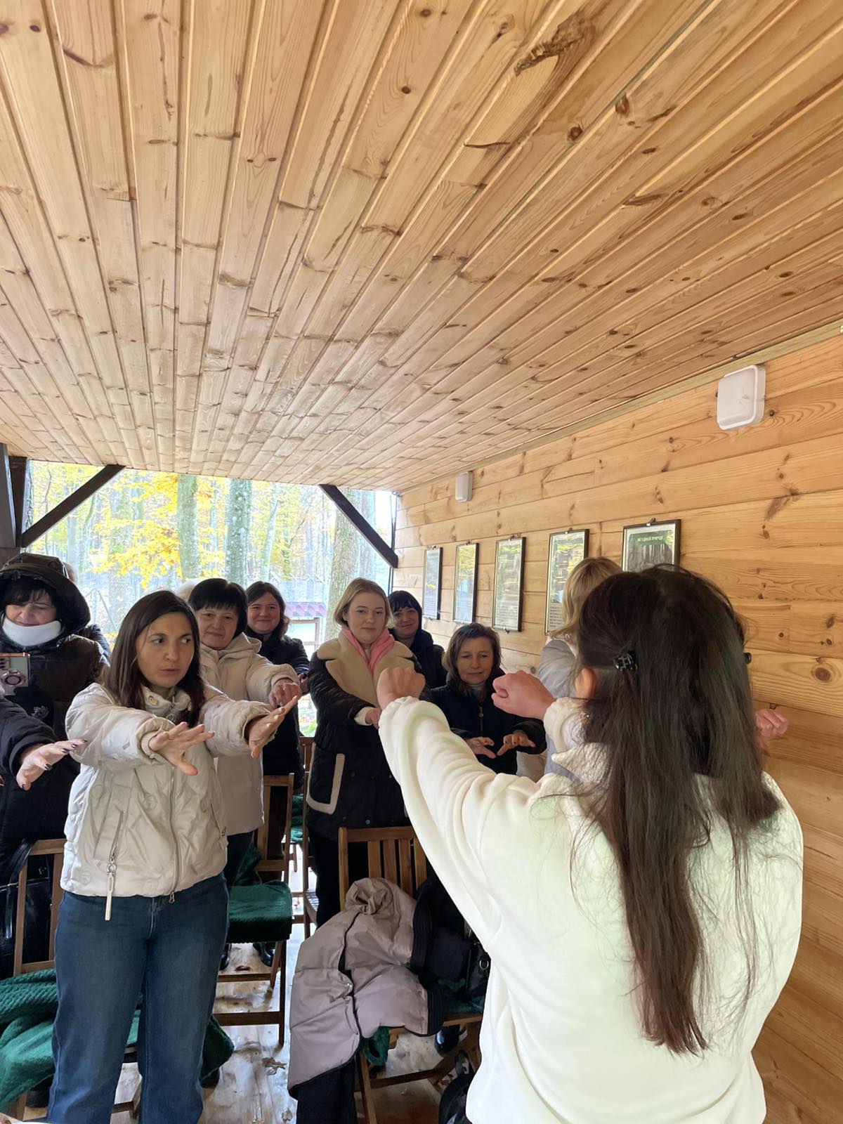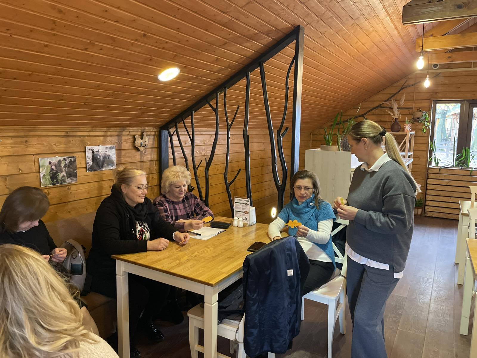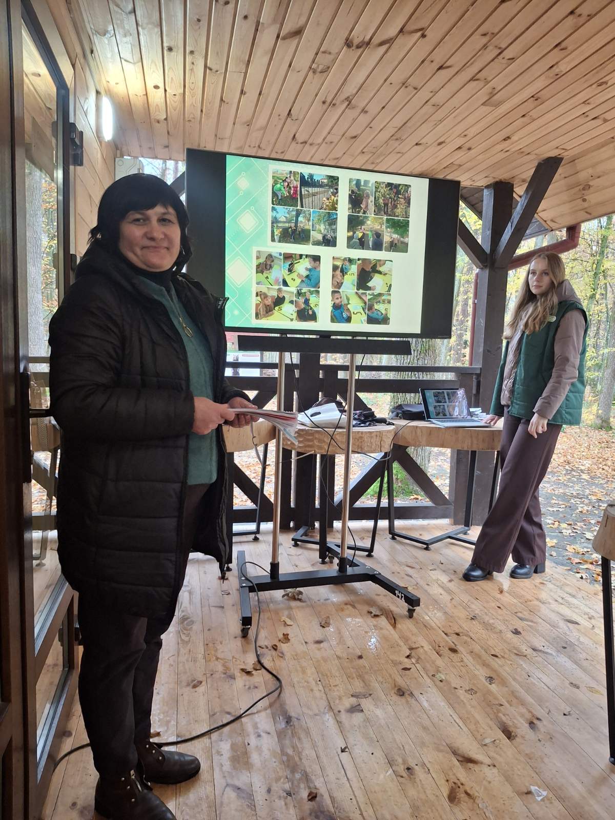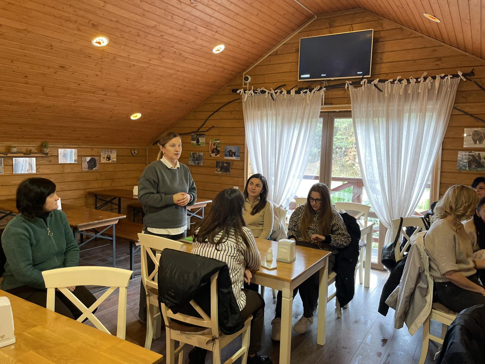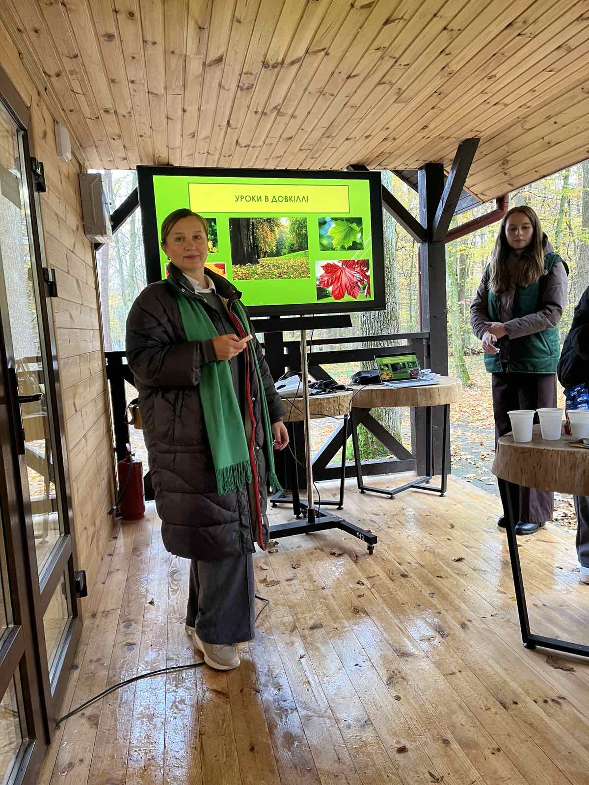 Учасників семінару привітали Марія Лазорко та Тетяна Первій, менеджерка з гостинності ведмежого притулку «Домажир». Тетяна Первій представила інфраструктуру притулку, розповіла про організацію освітньо-пізнавальних екскурсій, можливості для відпочинку й навчання дітей. Марія Лазорко створила позитивну атмосферу за допомогою вправ-криголамів «Лупа настрою» та «Дерево очікувань», ознайомила присутніх із різновидами уроків у довкіллі, презентувала практичний арсенал інтерактивних методик і дидактичних вправ — «Оркестр природи», «Я знаю 5…», «Алфавіт природи», «5-4-3-2-1». Вона наголосила, що лісова школа — це не конкретний заклад, а модель мислення, у якій діти вчаться спостерігати, досліджувати, працювати в команді, відчувати відповідальність за довкілля.