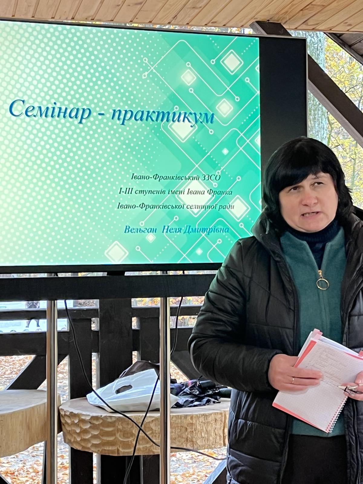 Під час семінару було підкреслено значення природотерапії для ментального здоров’я учнів. Спілкування з природою сприяє зниженню стресу, формуванню позитивних емоцій, поліпшенню фізичного стану дітей. Марія Загайкевич, асистентка вчителя, провела «хвилинку здоров’я», запропонувавши руханки та активності, які можна реалізувати під час уроків на свіжому повітрі. Завершенням семінару стало виготовлення виробів із природних матеріалів — символічне поєднання творчості, природи та педагогічного натхнення.