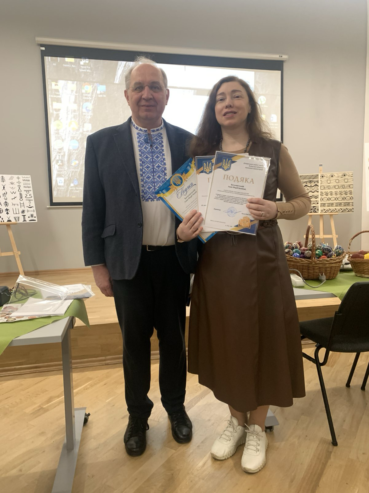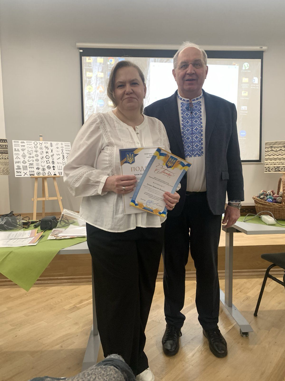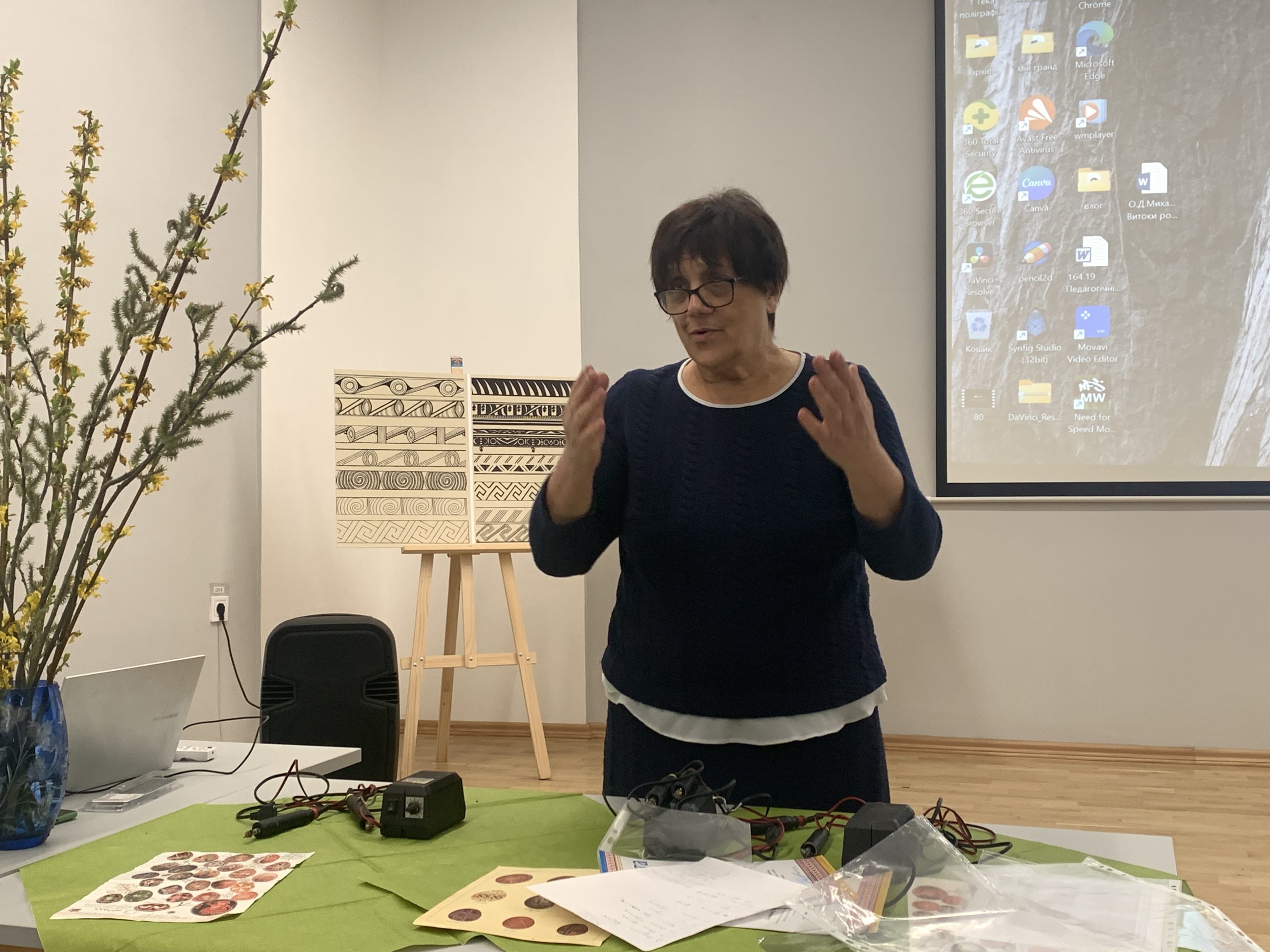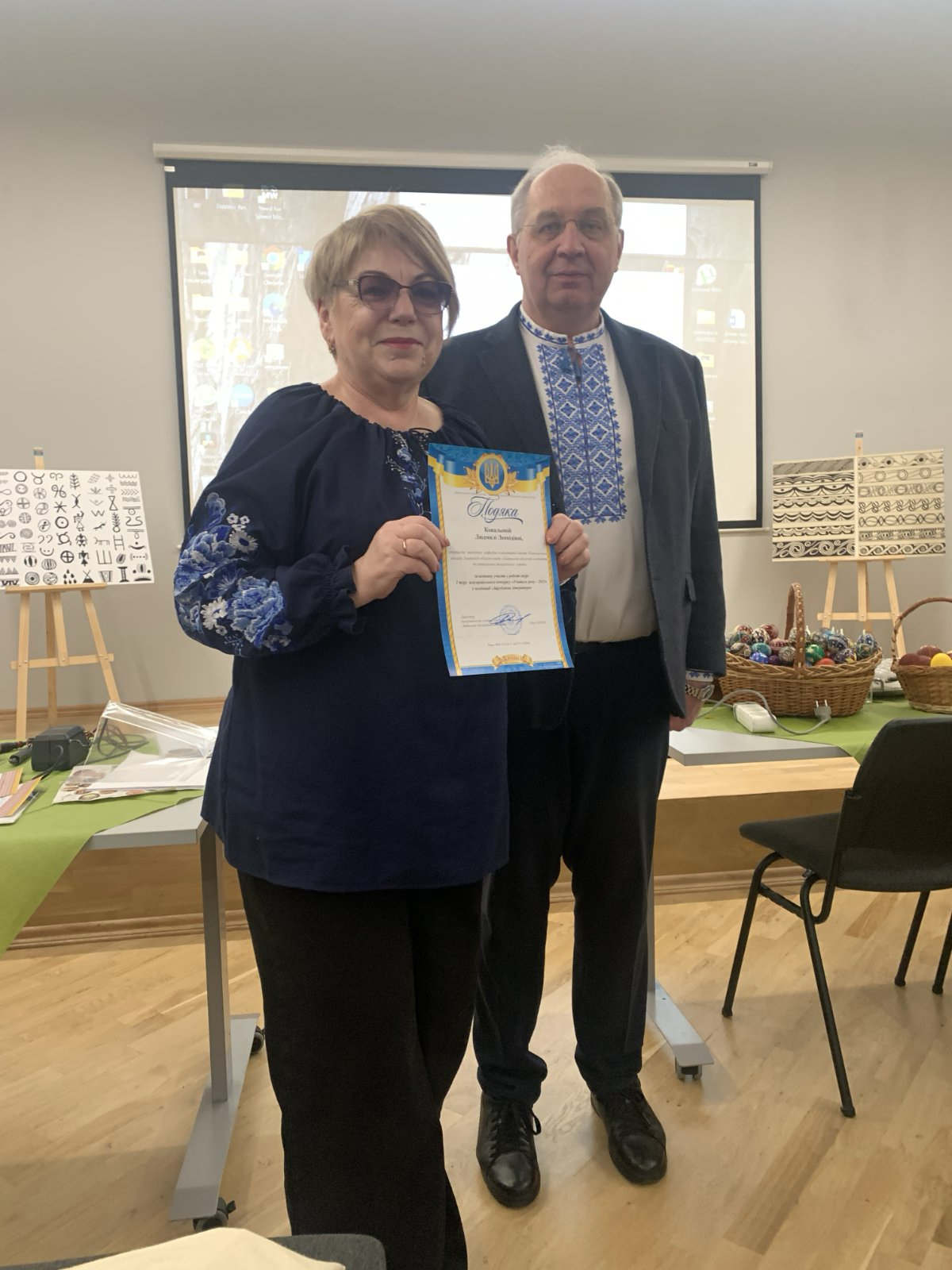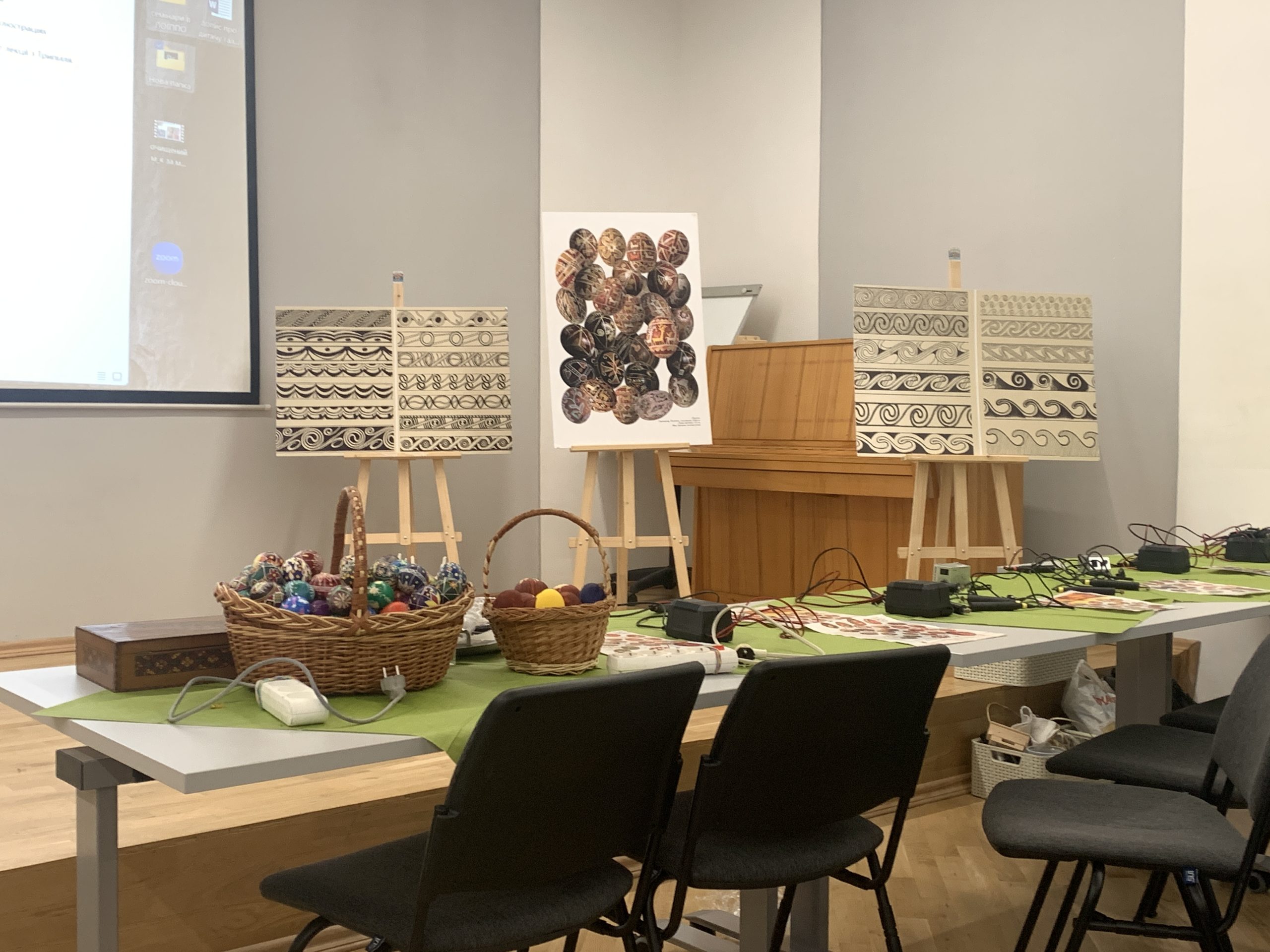 Завершилися збори колективу передсвятковою лекцією «Історичні витоки писанкарства та її мотиви в українському крафтовому мистецтві» та майстер-класом «Пишемо писанку разом», які провела Ольга Михайлюк, методистка кабінету координаційно-методичної діяльності.