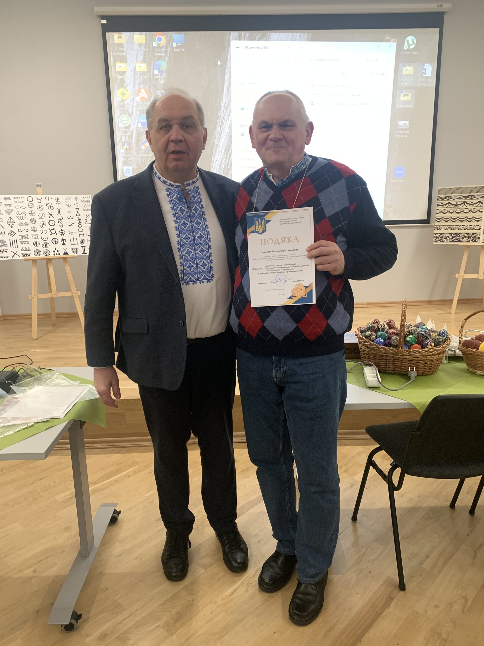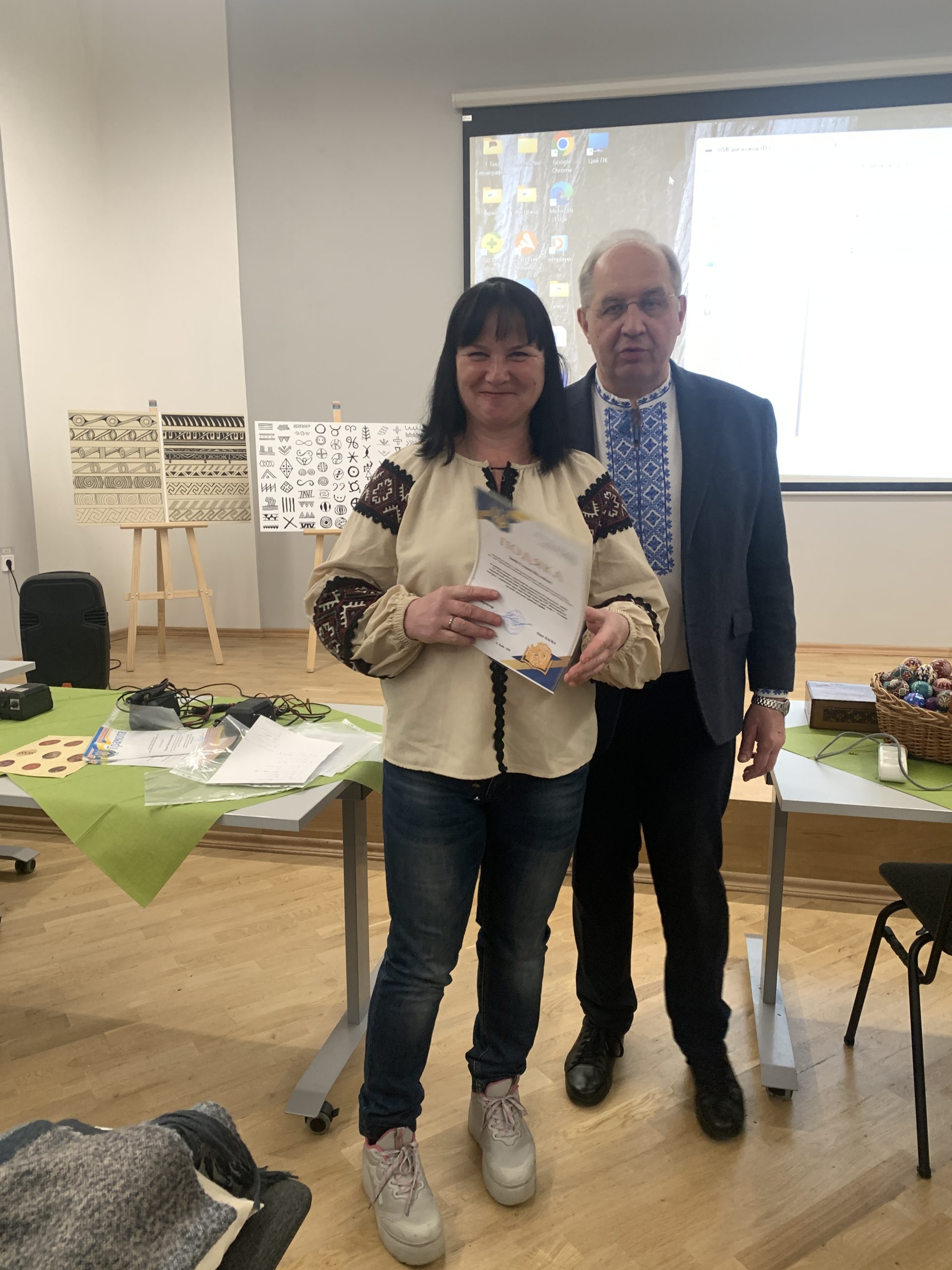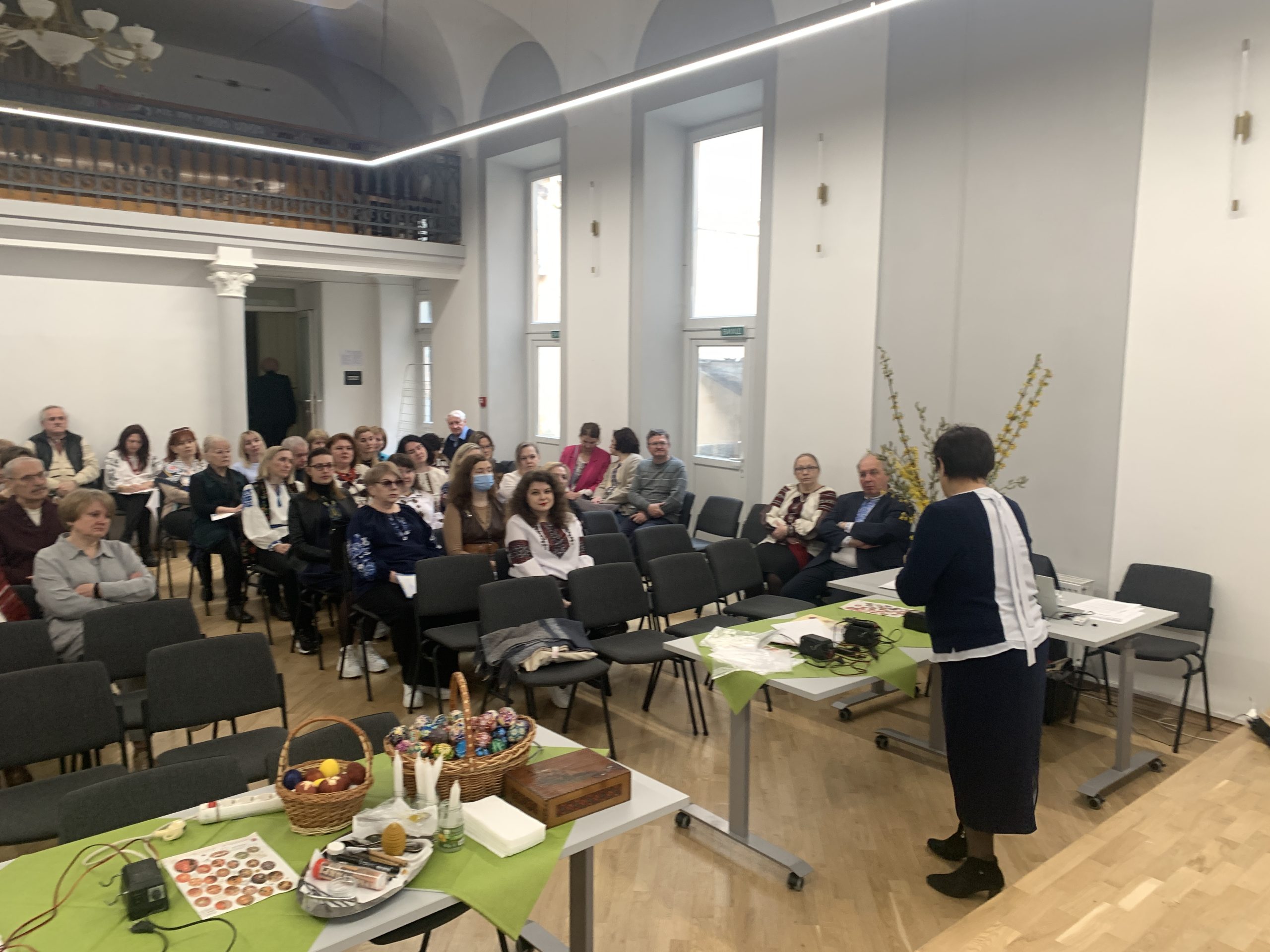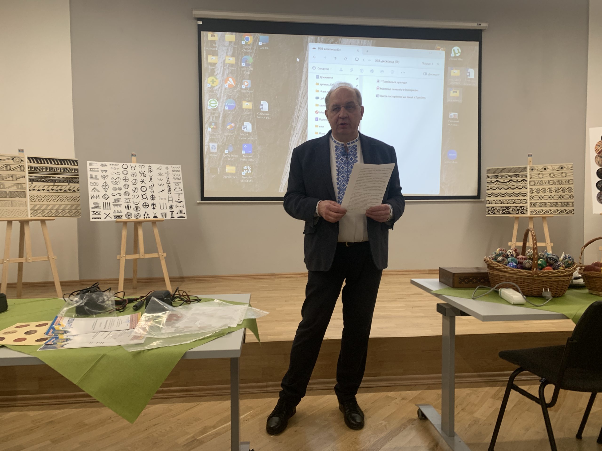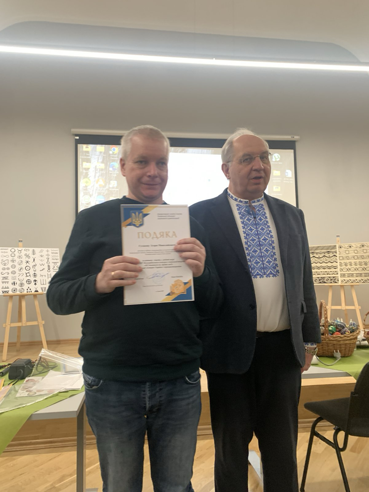 Завершилися збори колективу передсвятковою лекцією «Історичні витоки писанкарства та її мотиви в українському крафтовому мистецтві» та майстер-класом «Пишемо писанку разом», які провела Ольга Михайлюк, методистка кабінету координаційно-методичної діяльності.