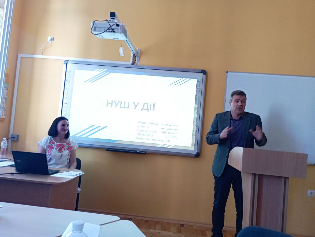 На міжфакультетському семінарі «Нова українська школа: збереження наступності між початковою та базовою середньою освітою» виступили з актуальних питань НУШ Сергій Пазюк, заступник директора з науково-педагогічної роботи, старший викладач кафедри освітньої політики КЗ ЛОР «Львівський обласний інститут післядипломної педагогічної освіти», регіональний координатор впровадження НУШ, та Ірина Костюк, методистка кабінету впровадження НУШ КЗ ЛОР «Львівський обласний інститут післядипломної педагогічної освіти».