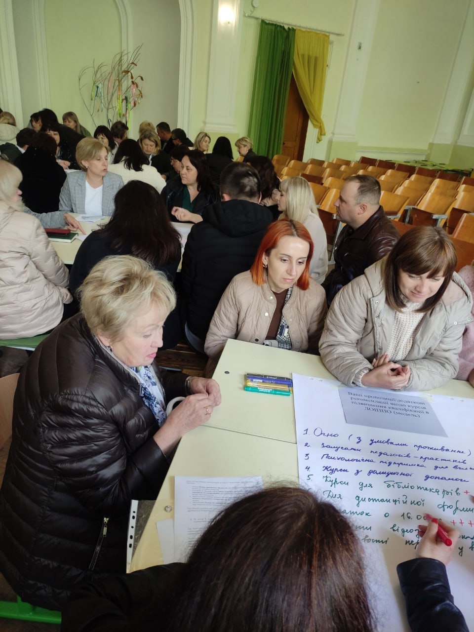 На зустрічі обговорили результати опитувань педагогічних працівників, які керівники провели у своїх освітніх закладах з таких питань: