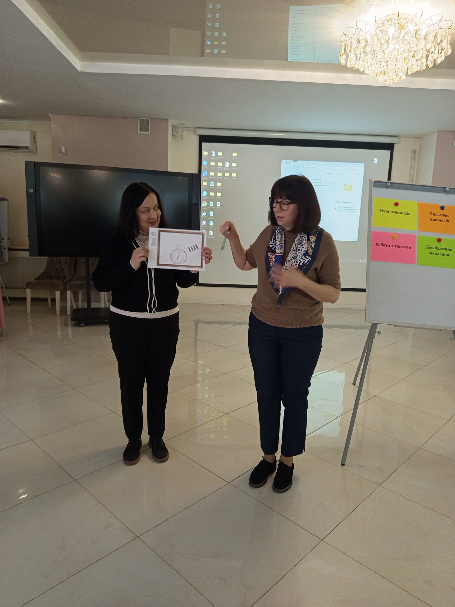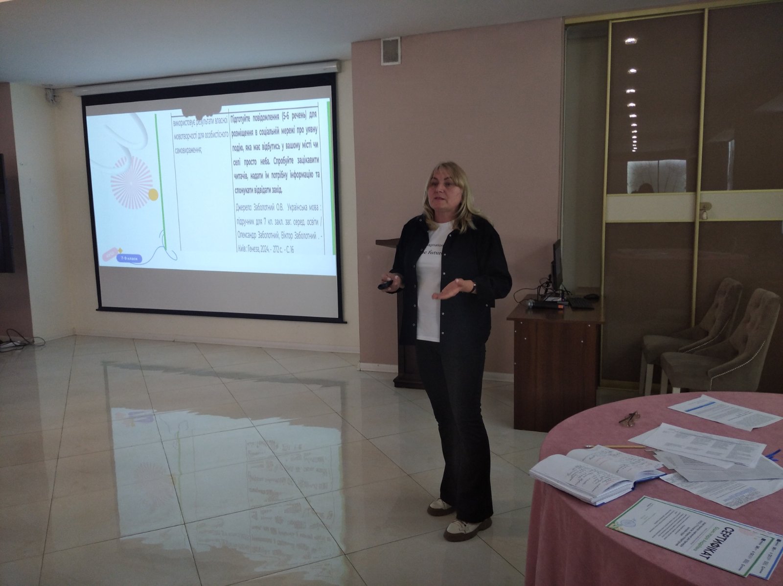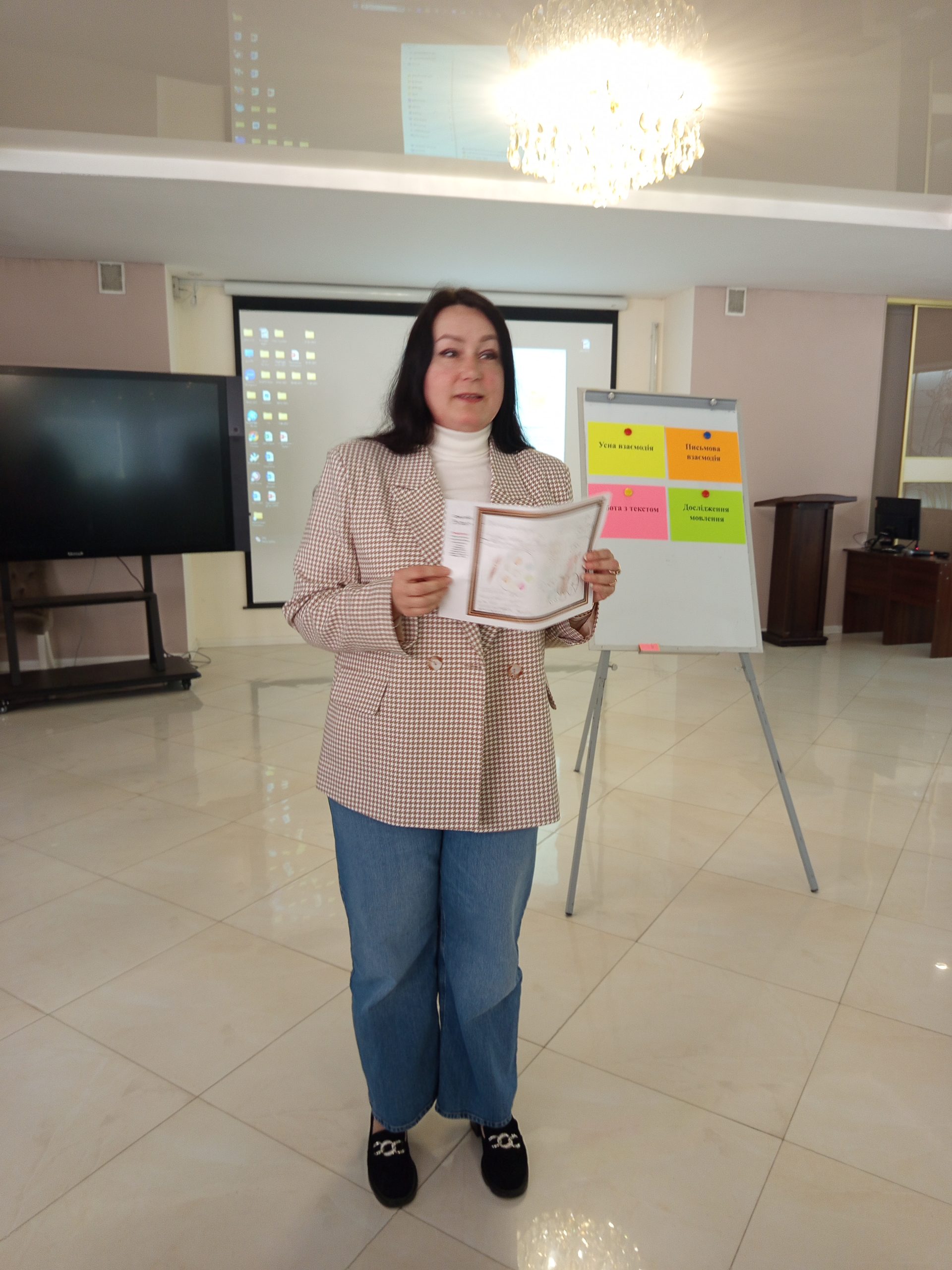 Тетяна Должикова, доцентка кафедри гуманітарної освіти, кандидатка філологічних наук,продемонструвала ефективні підходи до роботи з текстом як ключового інструменту підвищення читацької грамотності. Серед обговорених тем — методики читання, розвиток читацької самостійності та мотивації учнів.