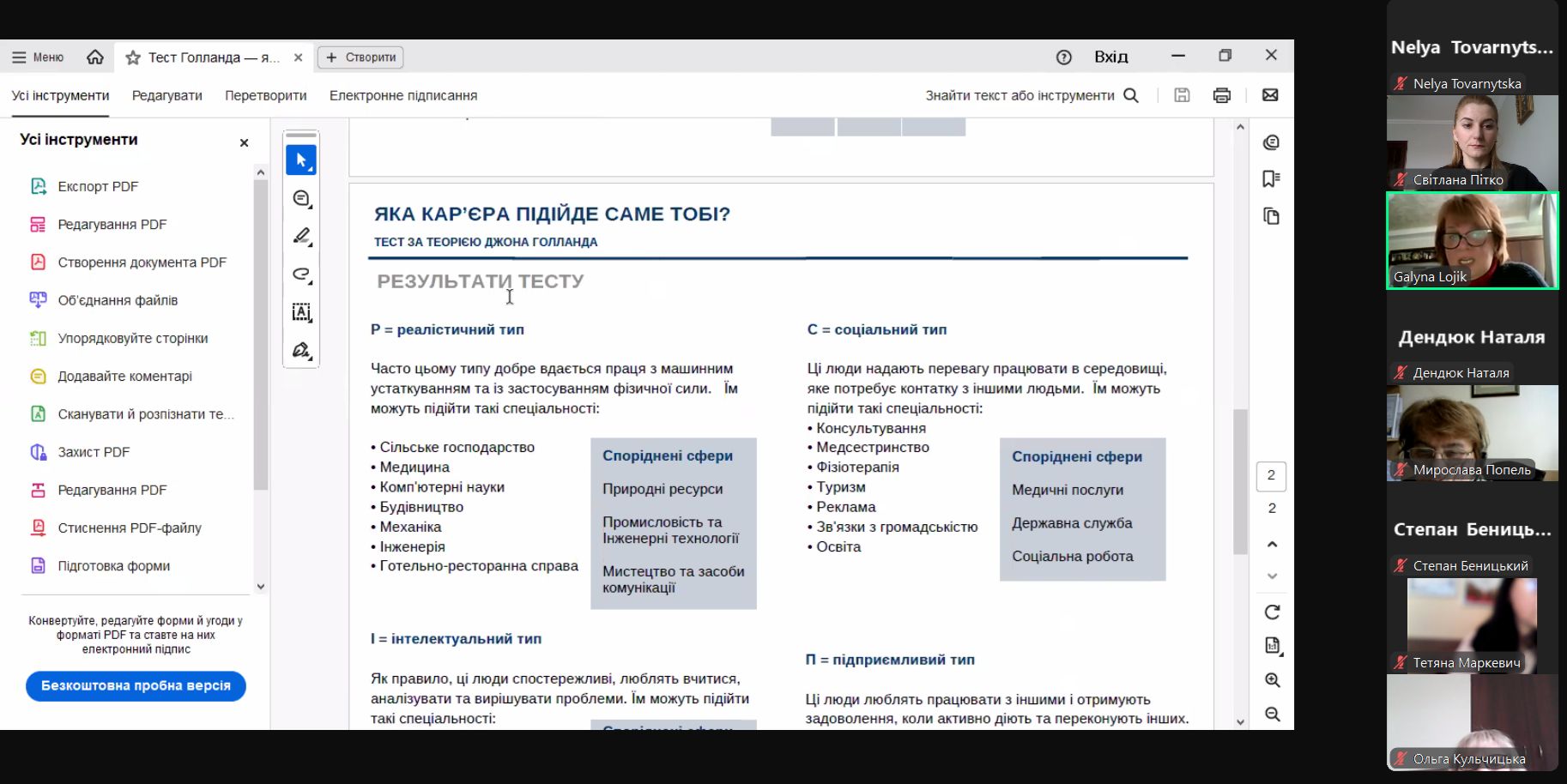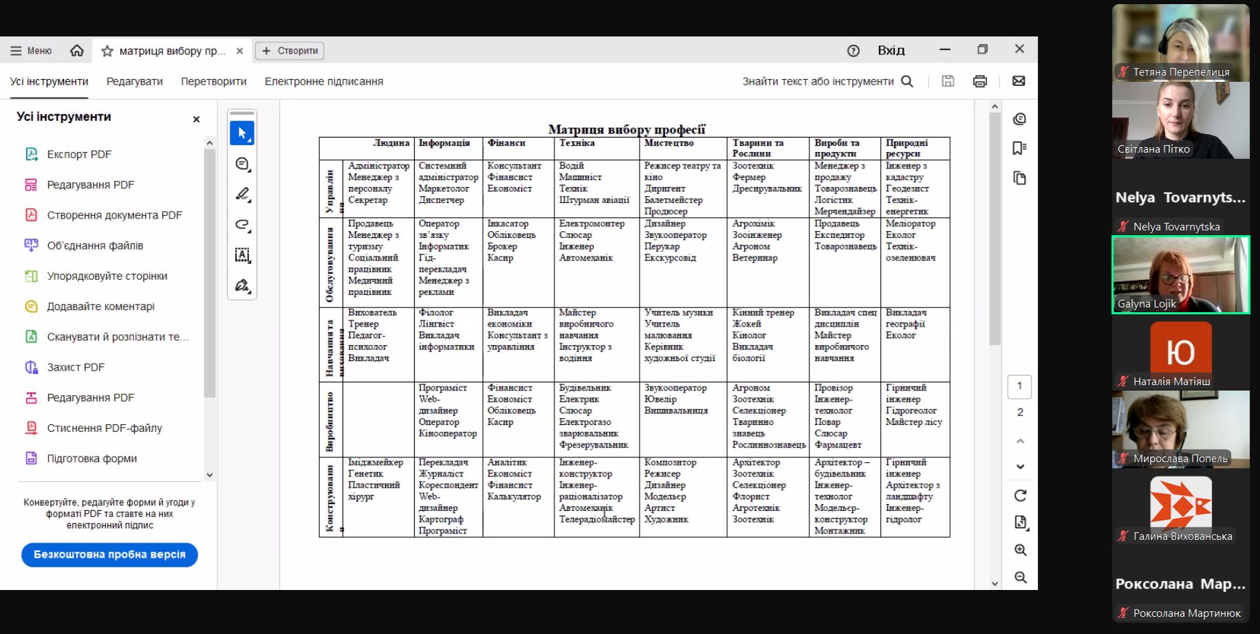 Галина Лоїк надала додаткові навчальні матеріали та Інтернет–ресурси, які будуть корисні педагогам у профорієнтаційній роботі з дітьми.