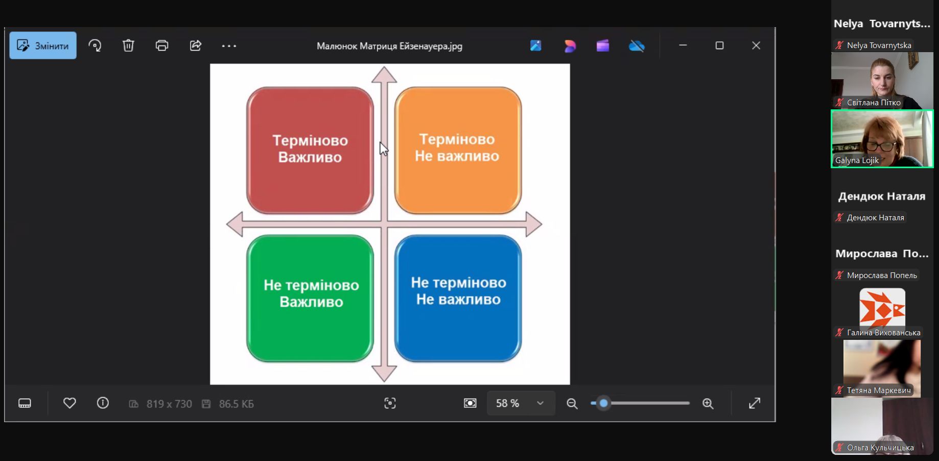 Кожен з учасників мав змогу попрактикуватися та ознайомитися з іграми профорієнтаційної тематики, а також з «Матрицею Ейзенауера», де педагоги мали записати 10 справ, які вони планують виконати впродовж квітня і структурувати їх за матрицею.