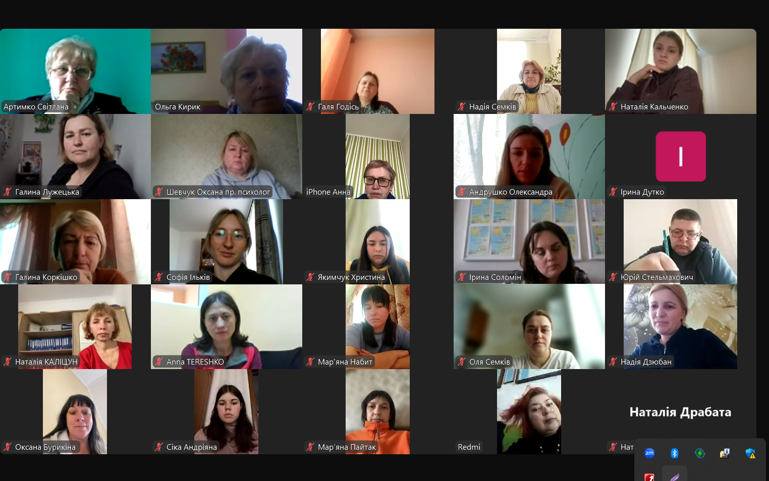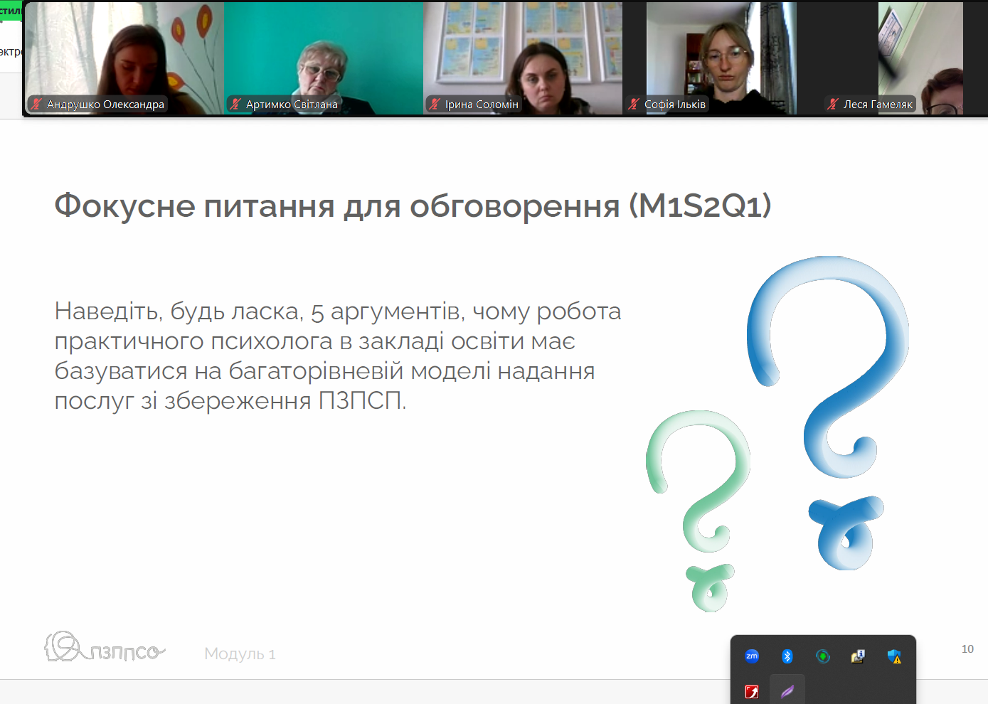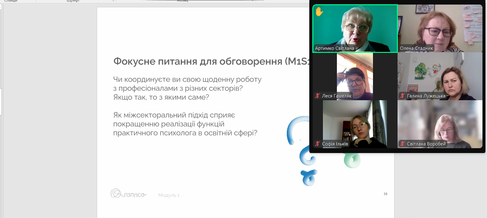 Наталія Яремкович, методистка кабінету «Навчально-методичний центр психологічної служби» ЛОІППО, акцентувала увагу учасників на поточному контексті для надання ефективної психосоціальної підтримки; взаємовпливі чинників, зумовлених війною, у сфері освіти; використанні нормативних документів у контексті збереження ПЗПСП практичним психологом закладу освіти.