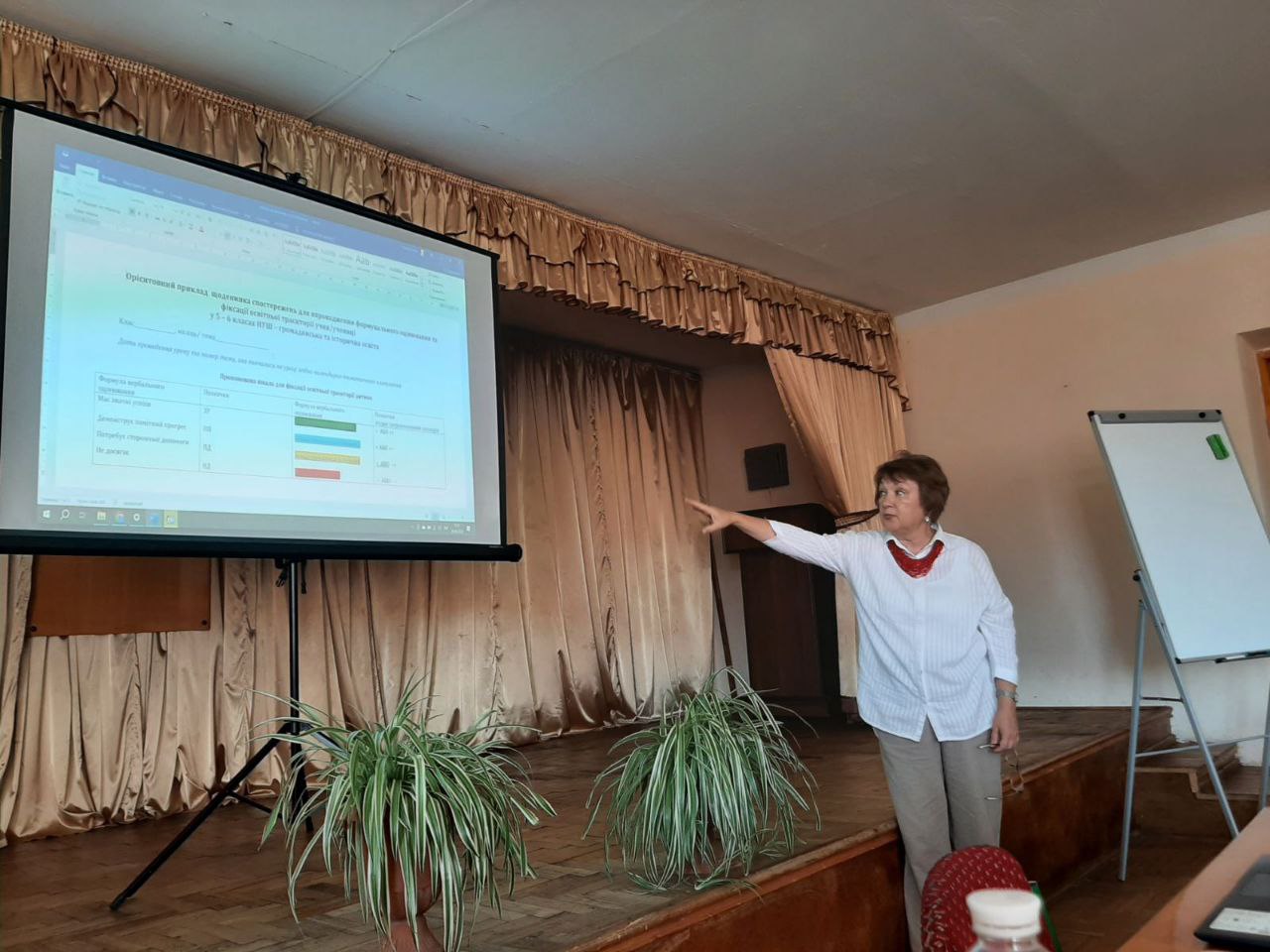 Особливу увагу викликала розмова про формувальне оцінювання та його інструменти, практичні поради щодо фіксації освітніх результатів учнів під час адаптивного циклу базового навчання, методичний коментар щодо компетентнісного навчання та формування наскрізних вмінь.