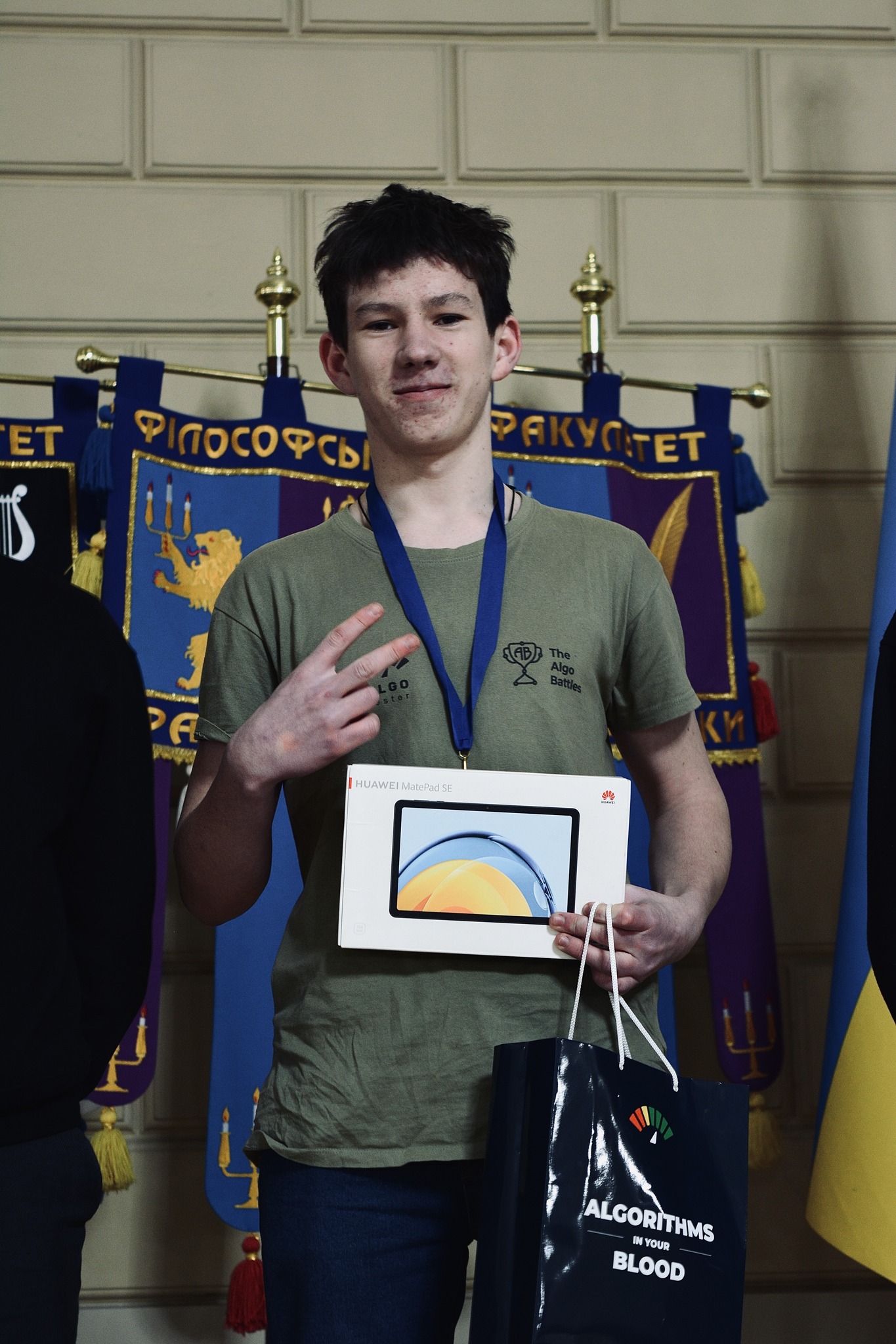 Шийка Мар’ян, учень 10 класу Ліцею ім. Володимира Жеребного Рудківської міської ради, за найкращий результат у змаганнях отримав в нагороду планшет.