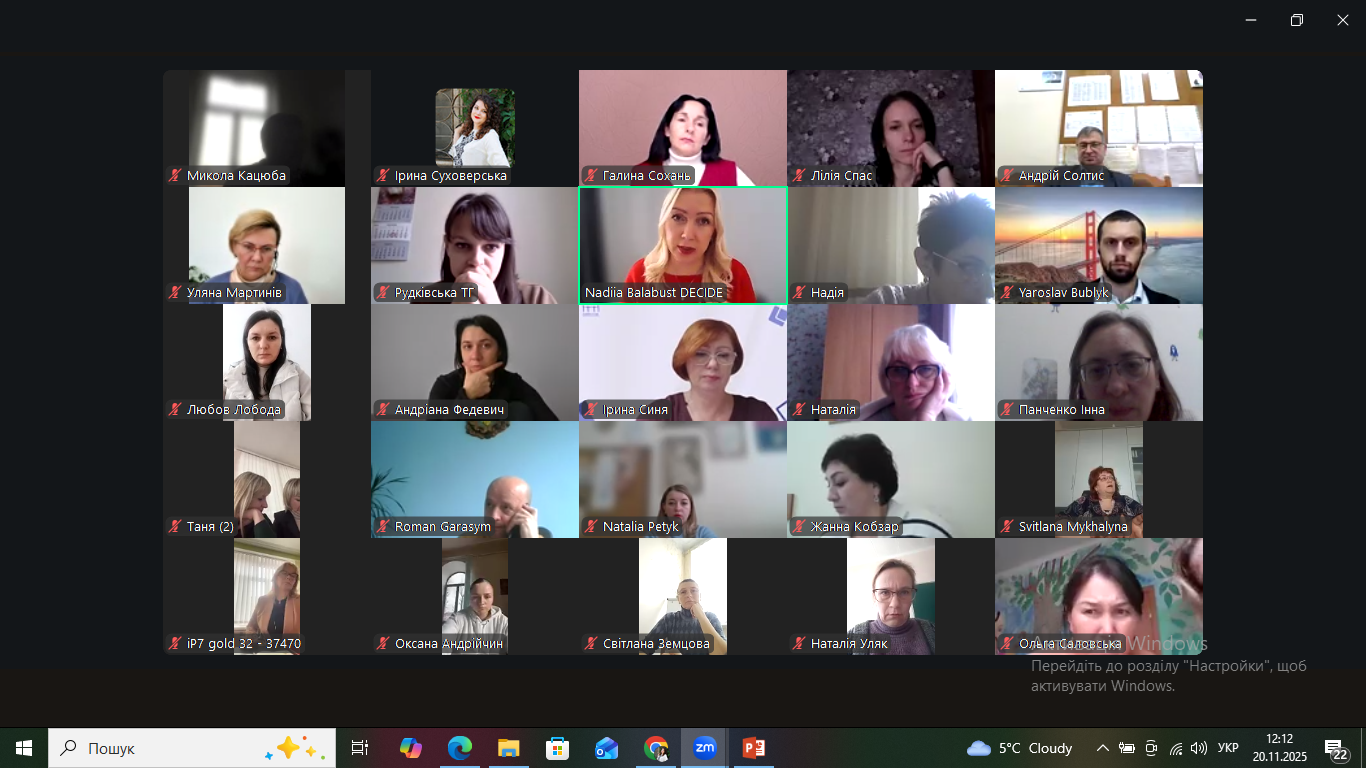 З вітальним словом виступила Надія Балабуст, національна експертка Проєкту DECIDE.