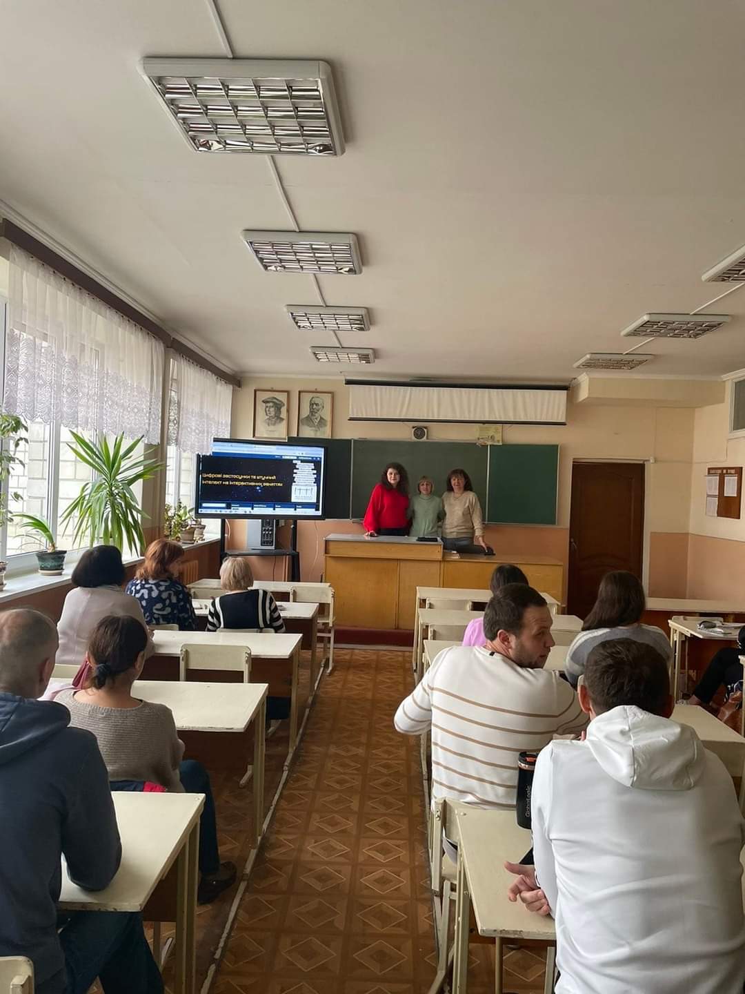30 жовтня 2024 року в cередній загальноосвітній школі №95 Львівської міської ради відбувся тренінг «Практичні можливості цифрових застосунків та штучного інтелекту на інтерактивних заняттях», який провела Ірина Суховерська, завідувачка кабінету інформаційно-комунікаційної діяльності, старша викладачка кафедри суспільствознавчої освіти КЗ ЛОР «Львівський обласний інститут післядипломної освіти», кандидатка історичних наук.