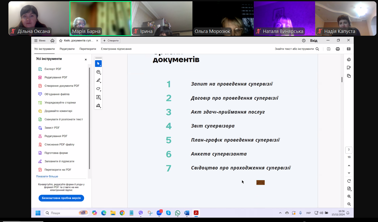 Упродовж навчання майбутні супервізори ознайомилися із теоретичними, нормативно-правовими та ціннісними засадами супервізії, основними принципами й методами, детально проаналізували процедурні питання організації та проведення супервізії. Під час практичних занять педагоги спробували себе у різних ролях – і супервізора, і супервізанта, – обговорюючи питання, що стосуються планування навчальної діяльності, конструювання уроку та оцінювання навчальних досягнень учнів. Окрім цього, педагоги отримали кейс документів, який допоможе їм в процесі підготовки та проведення супервізії.