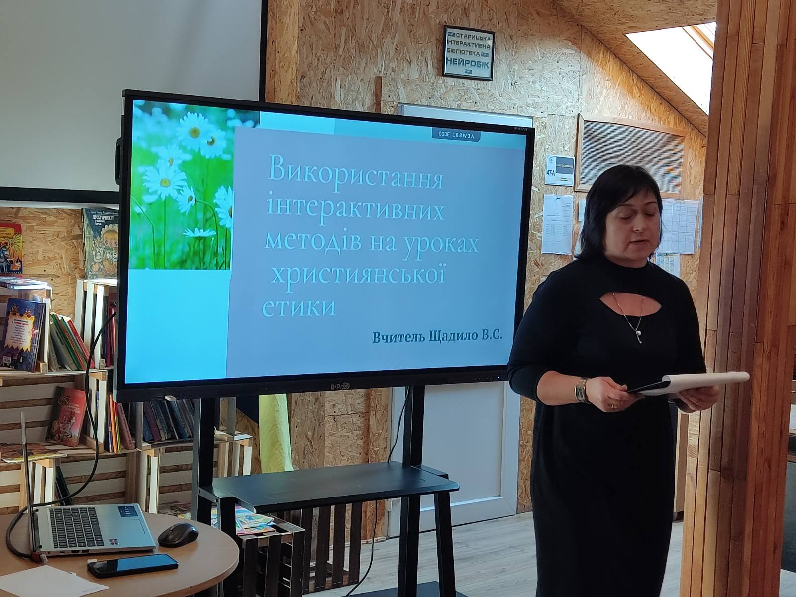 Натомість Віра Щадило, учителька Старицькому ЗЗСО І-ІІІ ступенів імені Юрія Костіва, розказала, як можна використовувати онлайн-інструменти для розвитку творчого і критичного мислення учнів на уроках християнської етики, а також у позаурочній діяльності. Педагог продемонструвала це на конкретних прикладах, подала методичні рекомендації учасникам зустрічі, які вчителі охоче використовуватимуть у своїй роботі.