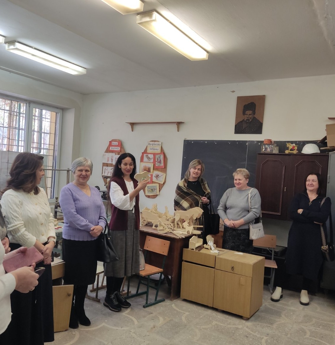 Наталія Косик гостинно зустріла освітян і радо поділилася своїм керівним досвідом роботи у школі, зокрема продемонструвала учасникам заходу зелені класи, де можна проводити уроки на природі, шкільну майстерню, в якій учні мають можливість виготовляти, наприклад, яворівську забавку, шкільний музей, в якому учні дізнаються про духовну спадщину рідного краю. Дуже цікавою виявилася інтерактивна бібліотека, в якій не лише можна читати книжки, а й проводити години спілкування.