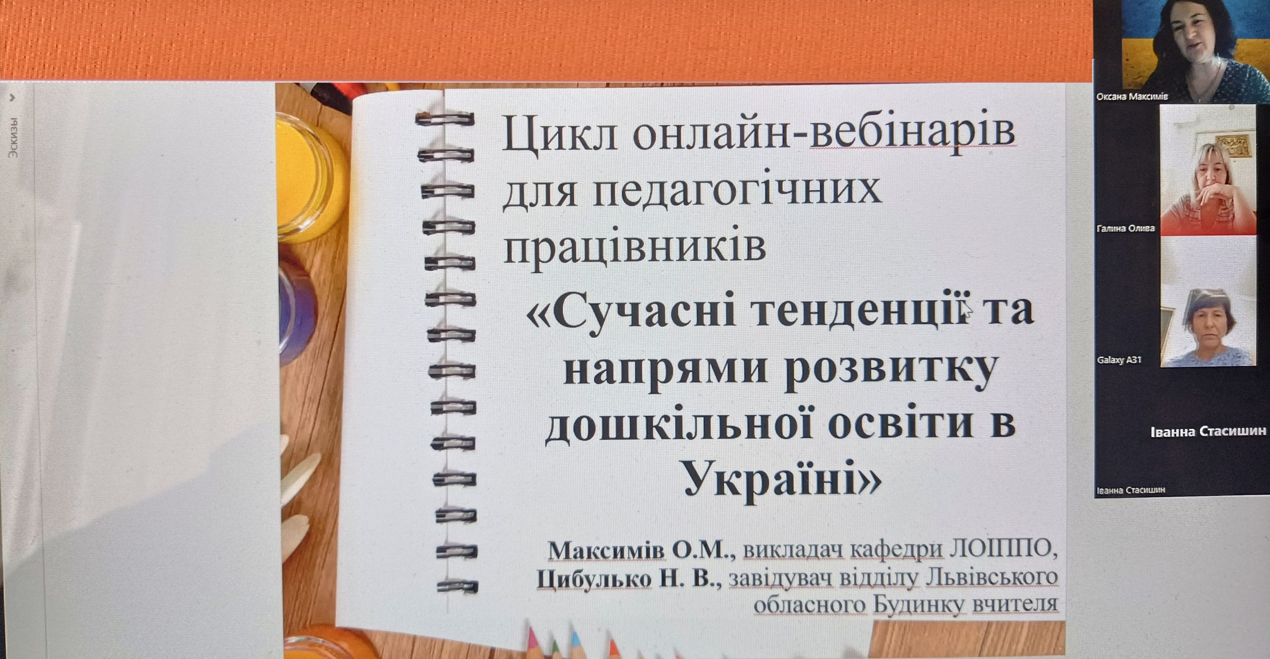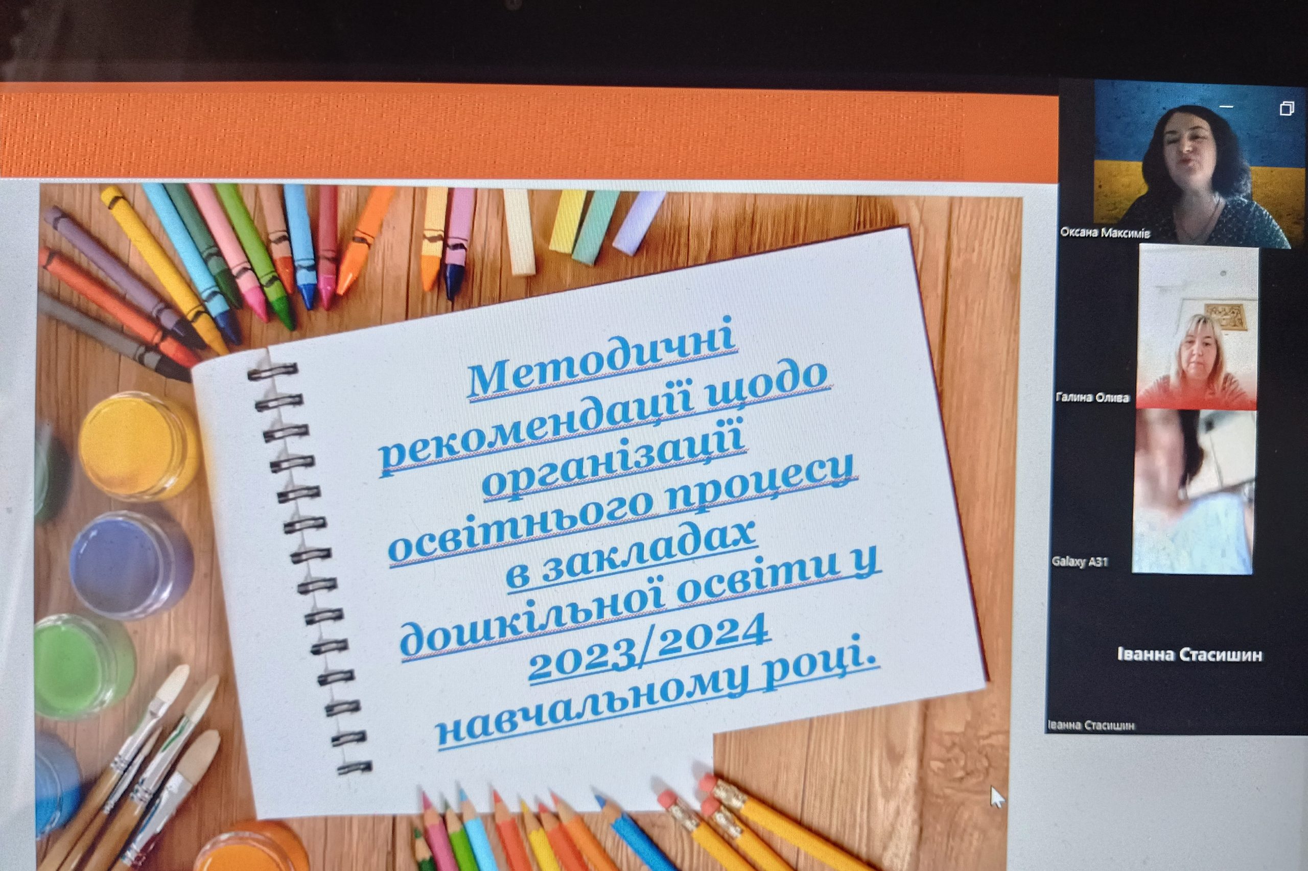 25 вересня2023 року відбувся вебінар з циклу «Сучасні тенденції та напрями розвитку дошкільної освіти» для педагогічних працівників закладів дошкільної освіти на тему «Методичні рекомендації щодо організації освітнього процесу в ЗДО у 2023/2024 навчальному році», в якому взяли участь більше 80 педагогічних працівників ЗДО.