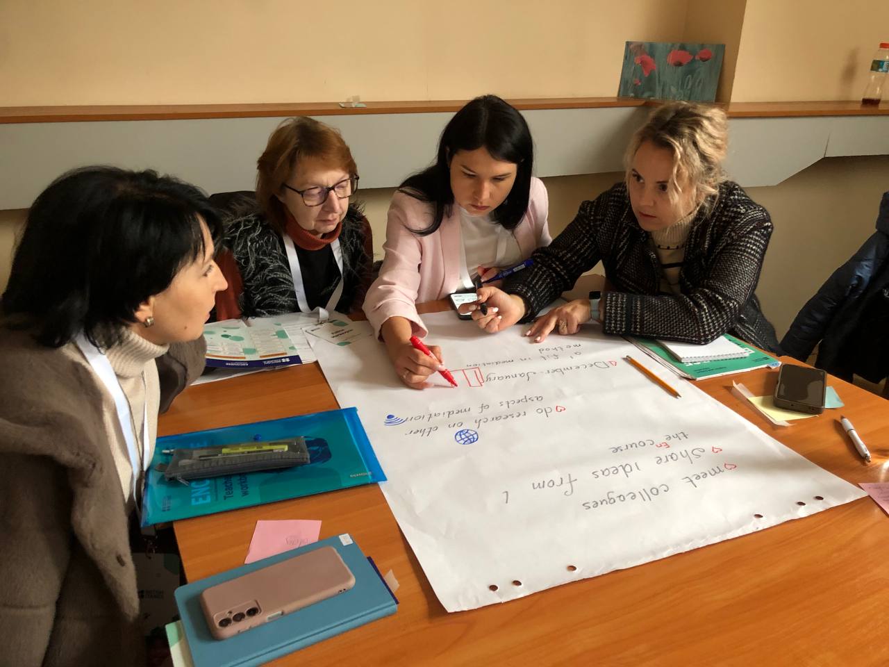 Основне завдання, над яким працювали учителі впродовж 45-годинного навчання на курсі, було навчитись розвивати в учнівства компетенцію медіації, тому курс є корисним і вчителям, які працюють у базовій школі. Курс забезпечує підвищення фахового рівня вчителя англійської мови, поєднує інновації та практичність. Впродовж 5-ти днів учасники проєкту брали участь у семінарах-практикумах під керівництвом тренерів, а протягом тижня між зустрічами вчителі виконували практичні завдання у своїх класах.