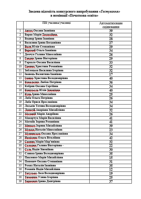 Зведена відомість конкурсного випробування “Тестування”