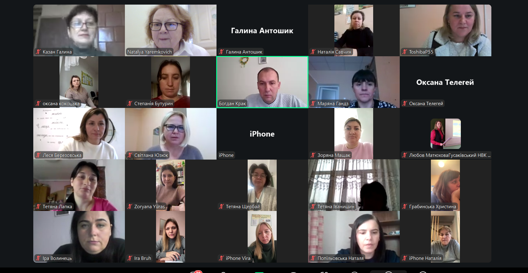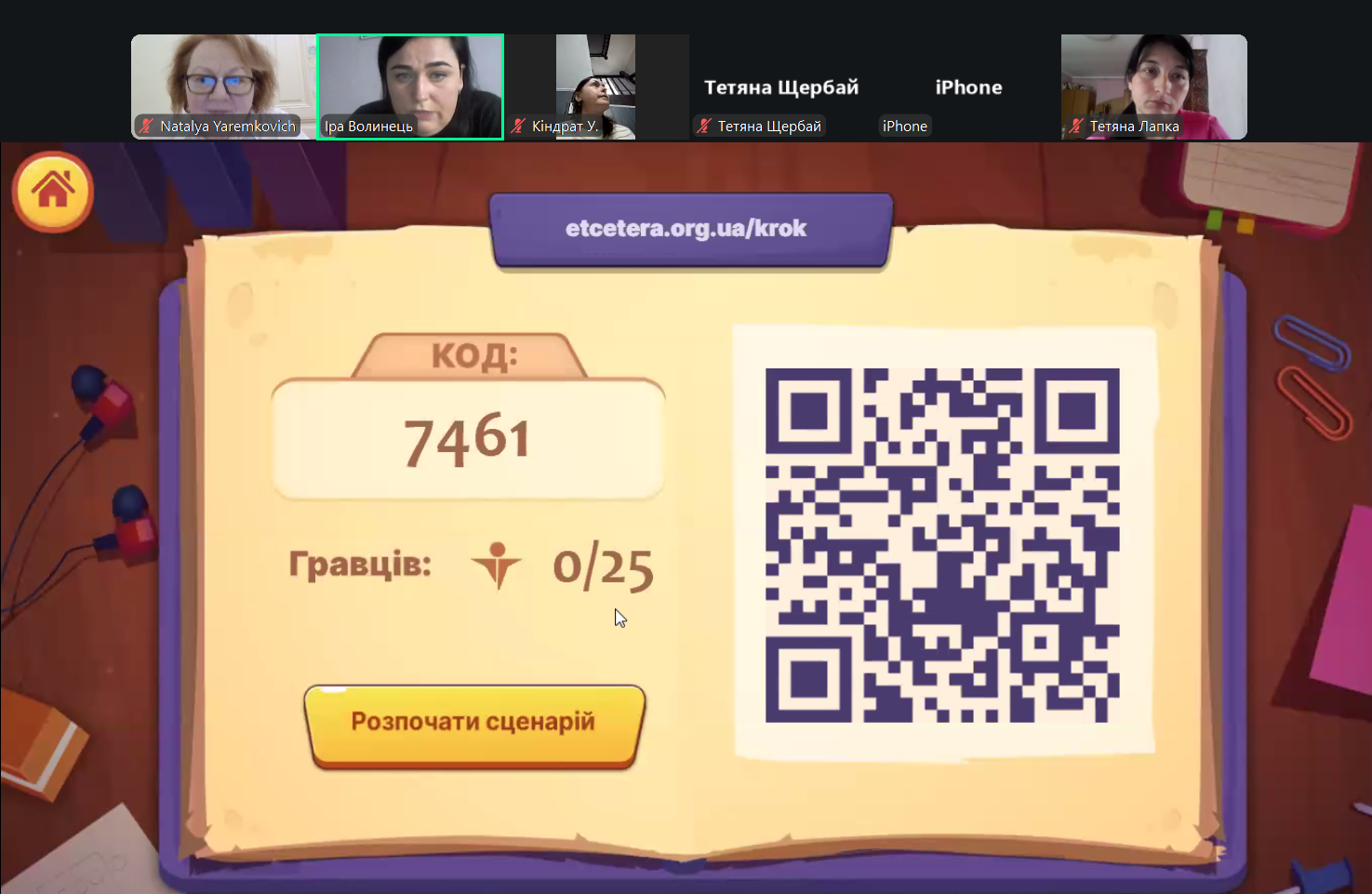 Ірина Волинець, соціальний педагог Шептицької гімназії № 1, презентувала авторську просвітницьку програму «Мій улюблений світ — це світ без агресії», окреслила її мету, зміст та результати апробації. Також вона поділилася досвідом використання інтерактивної гри «КРОК» ГО «Сетера», яка є ефективним інструментом профілактики булінгу й насильства та розвитку навичок безпечної поведінки у дітей і підлітків.