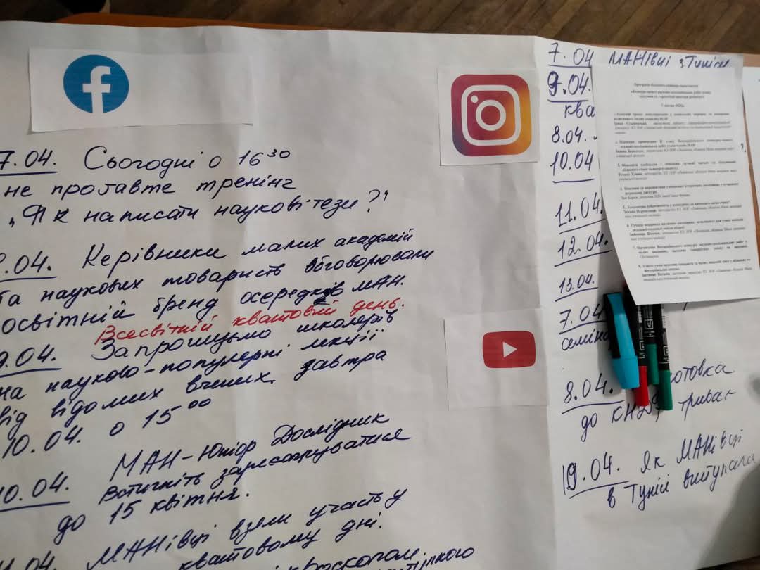 Учасники заходу мали змогу обговорити широке коло питань, серед яких – формування освітнього бренду: популяризація у соціальних мережах та створення позитивного іміджу осередку МАН, яке підготувала Ірина Суховерська, завідувачка кабінету інформаційно-комунікаційної діяльності  Львівського обласного інституту післядипломної педагогічної освіти. Вона зосередилась на важливості формування позитивного іміджу МАН у медіапросторі — зокрема, через активну присутність у соціальних мережах. Вона наголосила, що сучасний освітній бренд потребує не лише якісного змісту, а й ефективної комунікації. З цією метою учасники семінару в інтерактивній формі напрацьовували кроки для успішного використання соціальних медіа для просування освітнього бренду та розробляли контент-план.